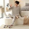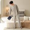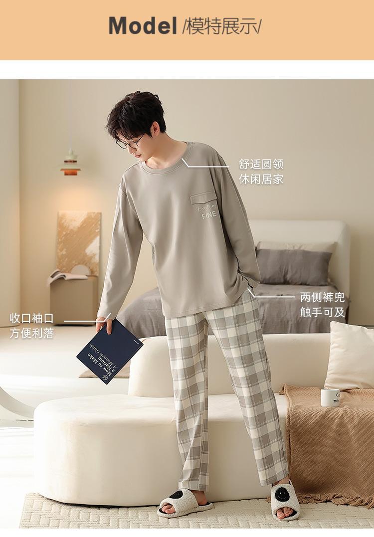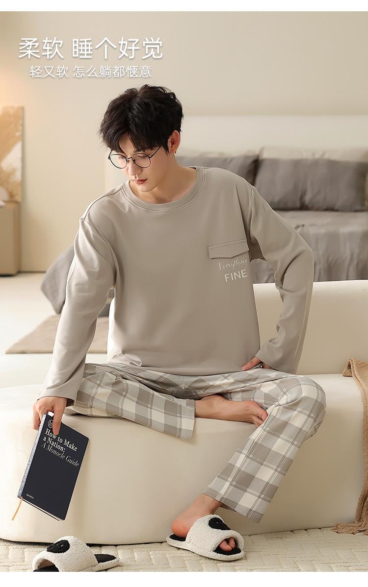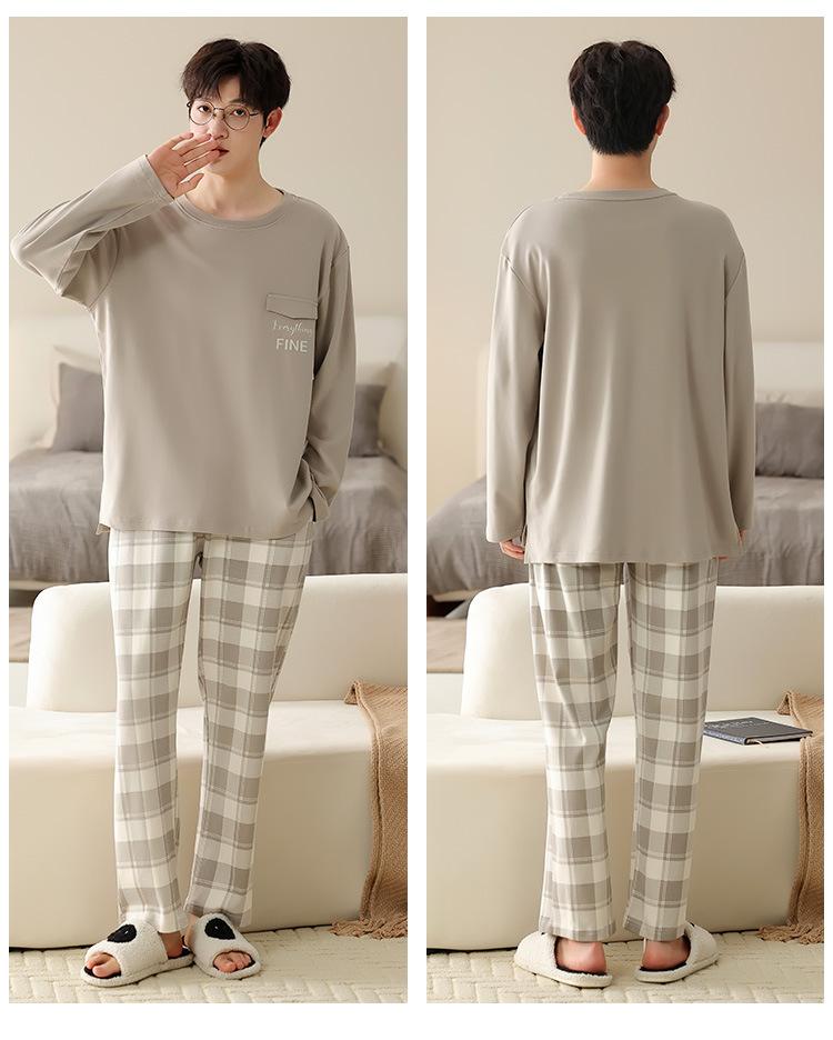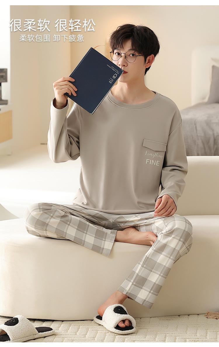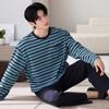 Vestindo pijama masculino de algodão puro outono manga comprida roupas para casa primavera e outono juventude meninos terno plus size masculino