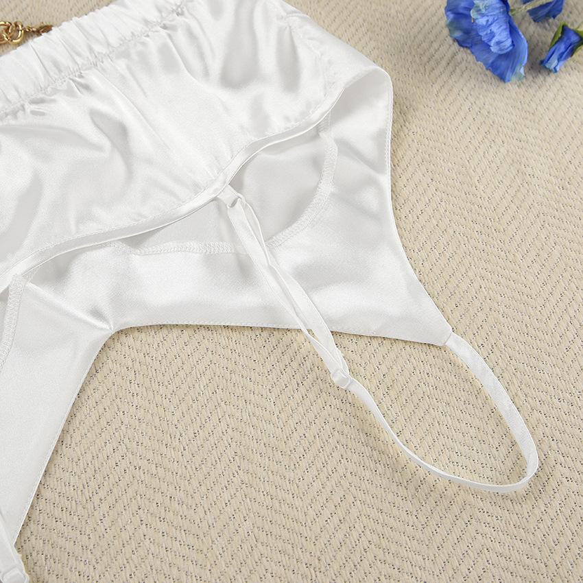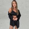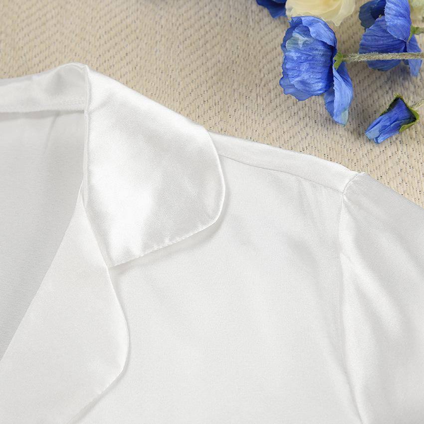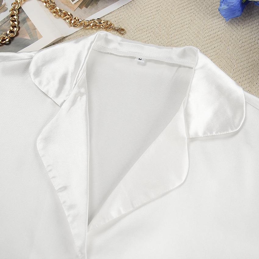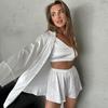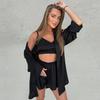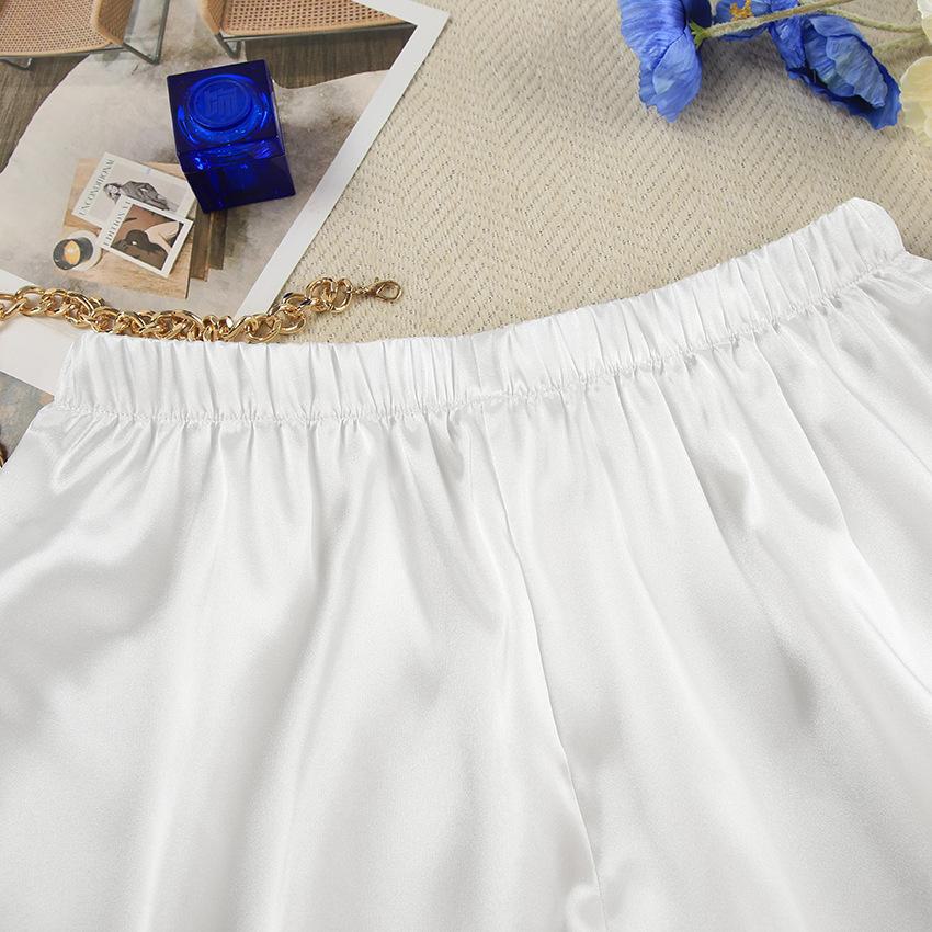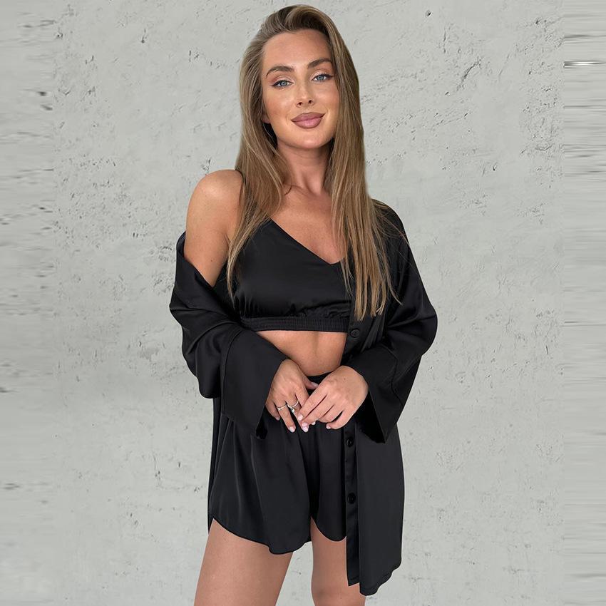 2024 Europeu e Americano Outono Texturizado Branco Solto Confortável Roupa Interior de Manga Comprida Shorts Pijamas Três Peças Transfronteiriças Roupas Domésticas