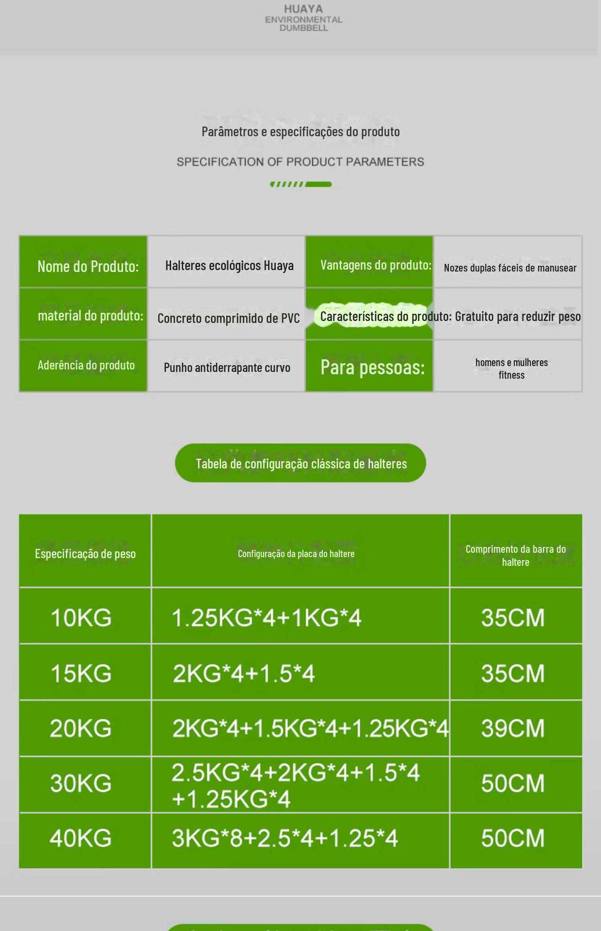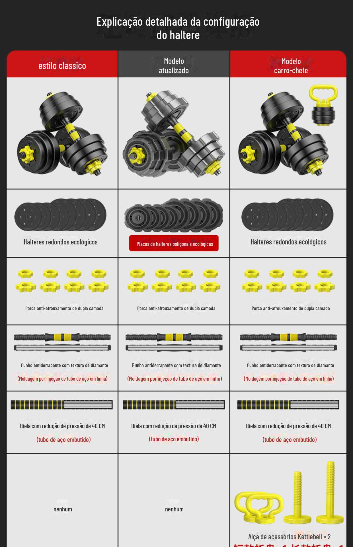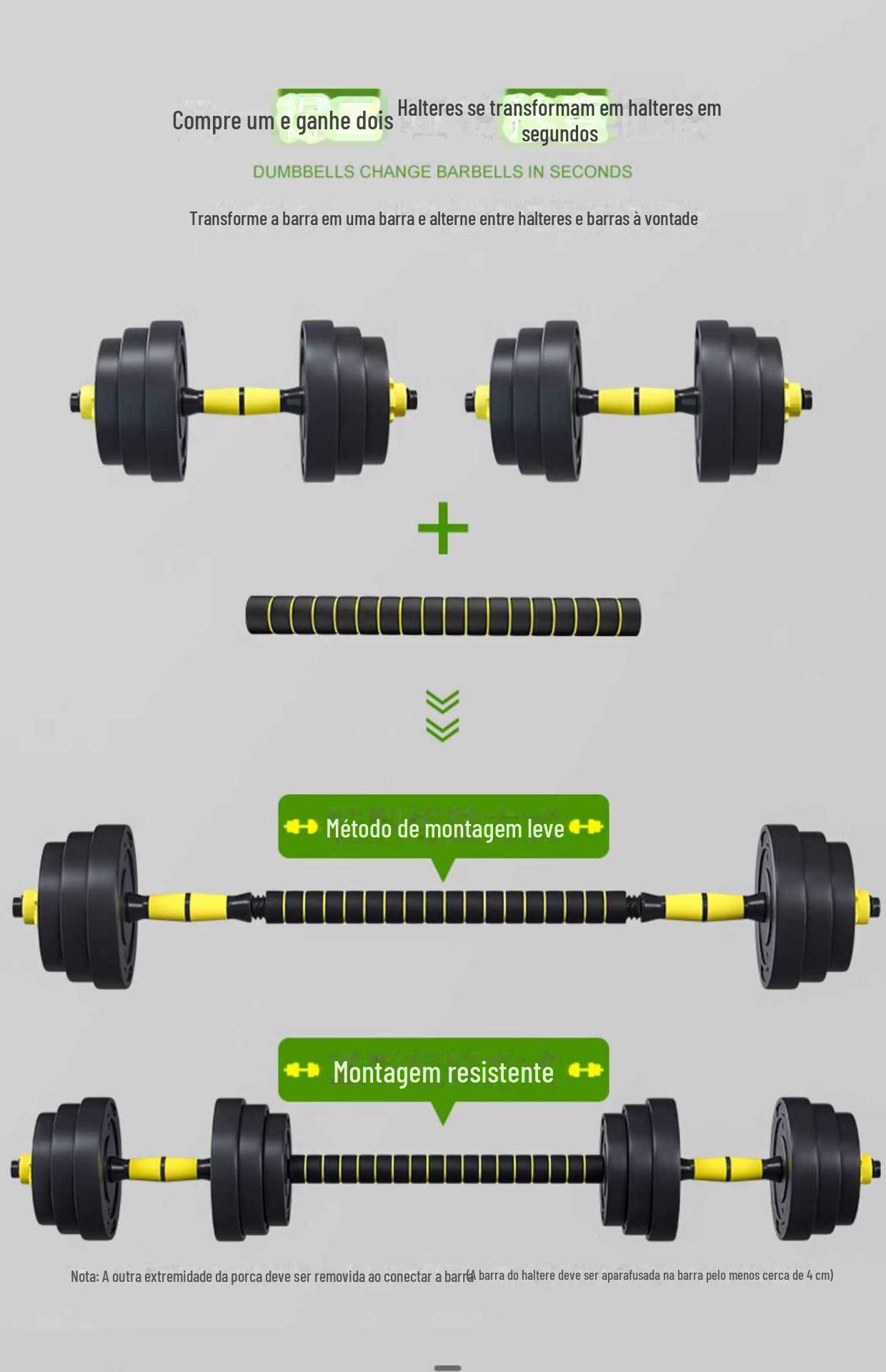 Halteres Homens Fitness Home 20/30 / 40kg Equipamento de Exercício com Barra Peso Ajustável Yabbell Par Masculino