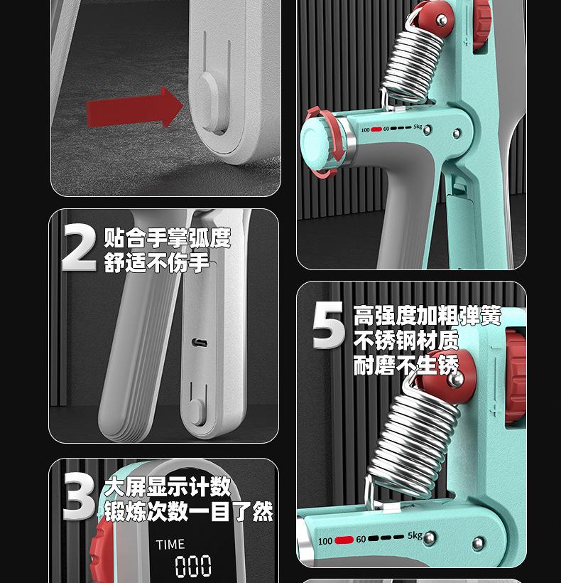Carregamento eletrônico contagem aperto ajustável 5-100kg fitness exercício dedo braço músculo equipamento esportivo