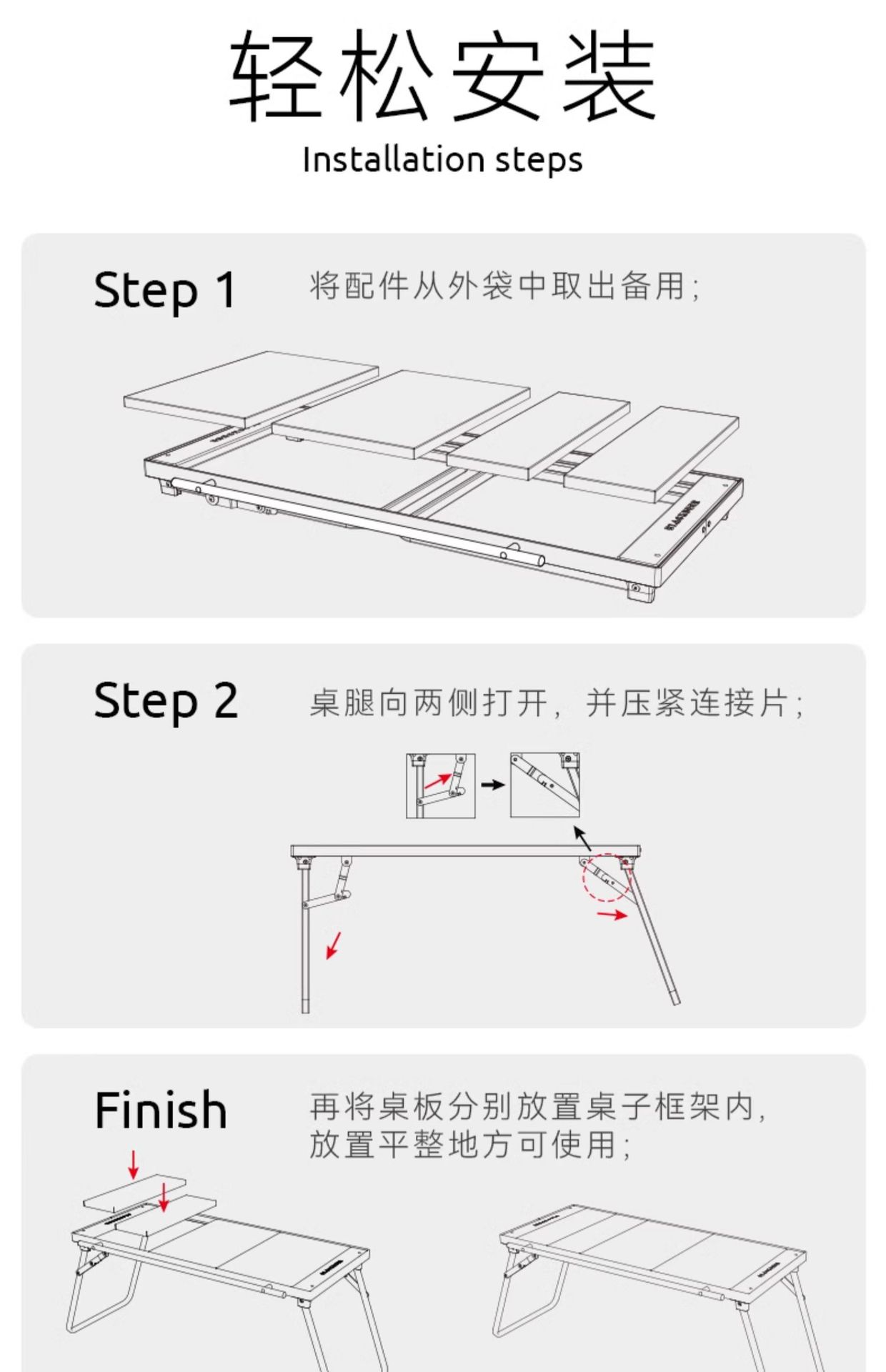 Mesa de viagem modular igt por atacado, mesa de combinação para acampamento ao ar livre, mesa dobrável portátil multifuncional leve
