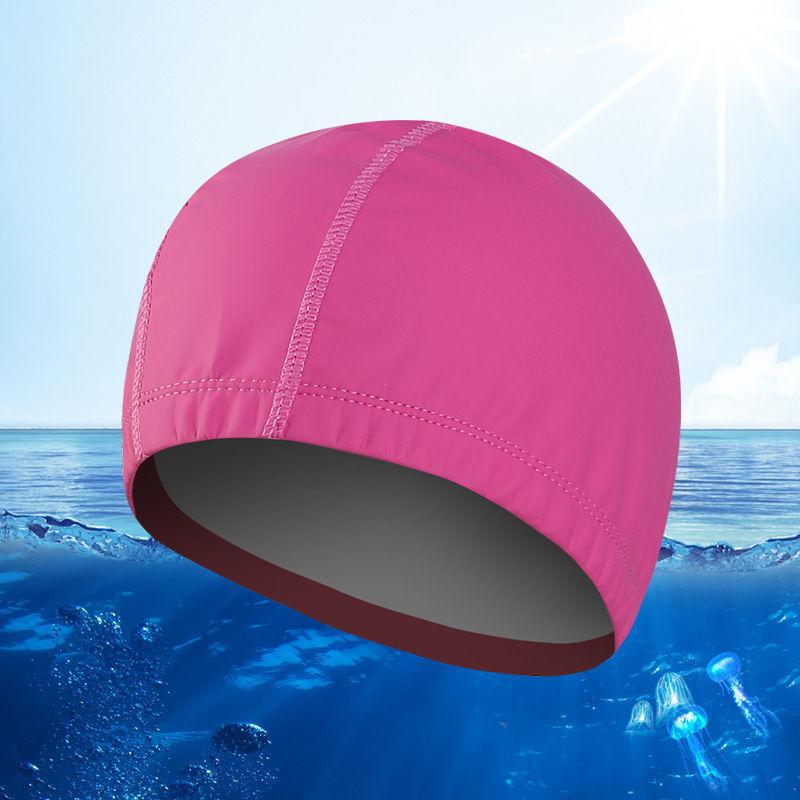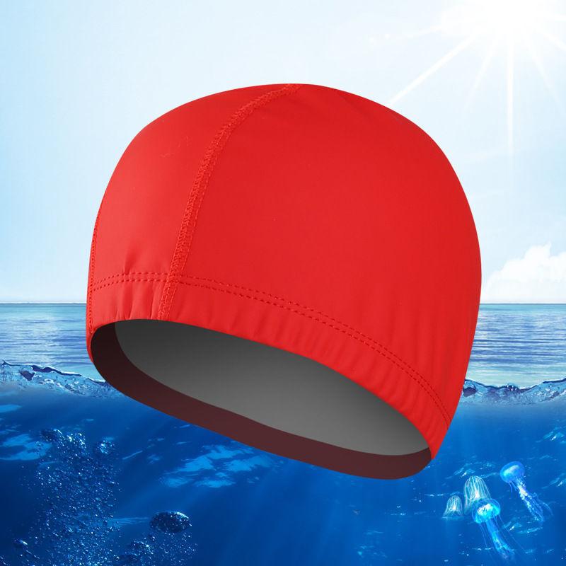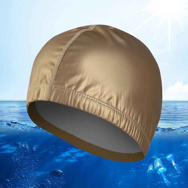 Touca de natação impermeável revestida de PU, protetor solar adulto, respirável, alta elasticidade, touca de natação de cabeça de Lycra, touca de natação de PU, tomada de fábrica
