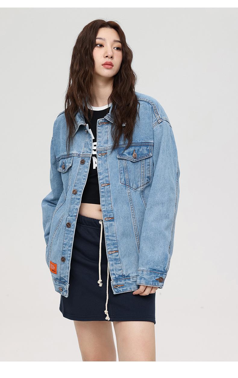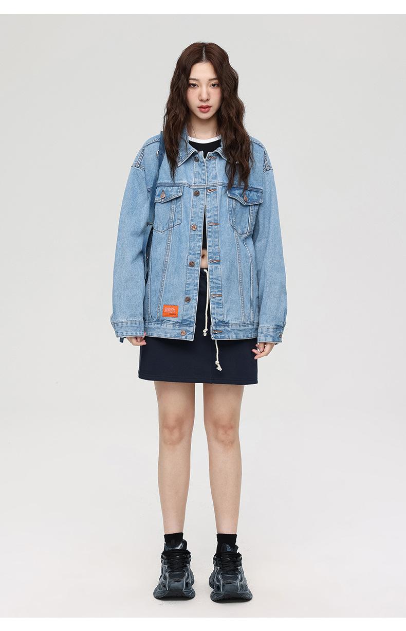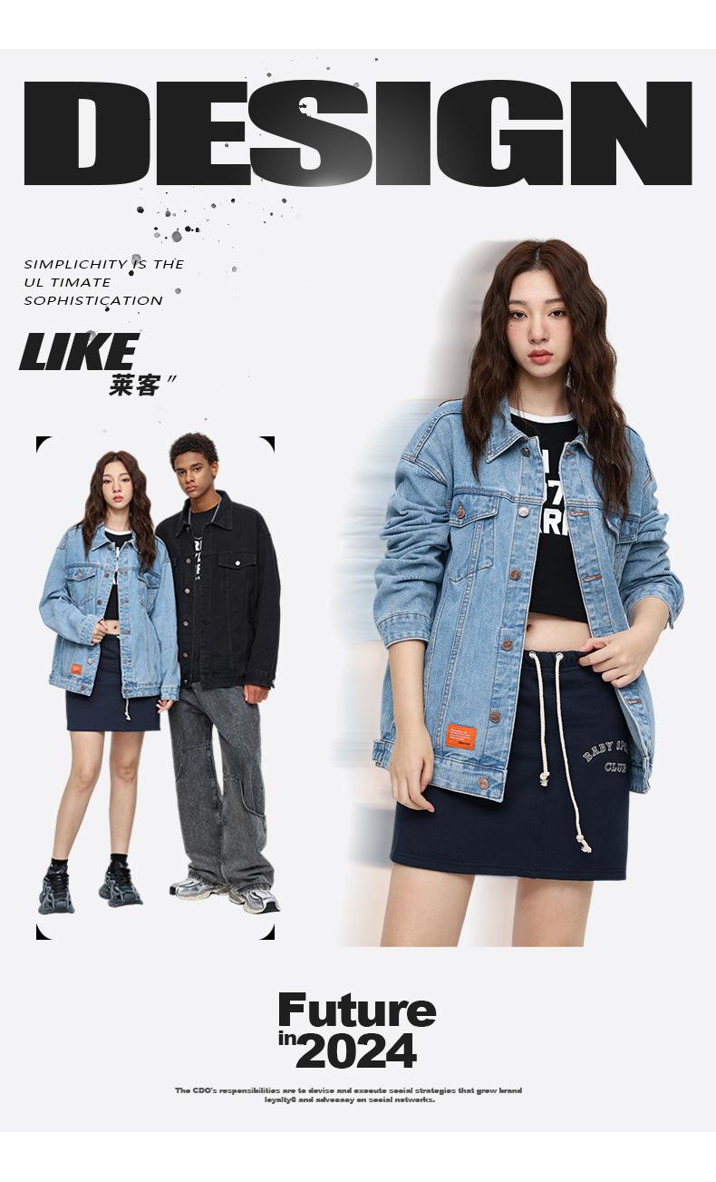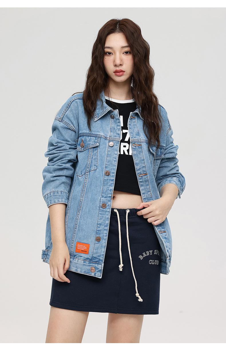 Esta jaqueta jeans da moda é mais larga do que os tamanhos normais, então pode ser mais adequada se você escolher um tamanho menor do que o seu tamanho original.