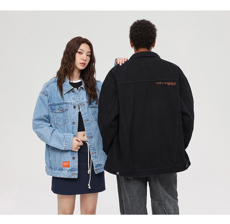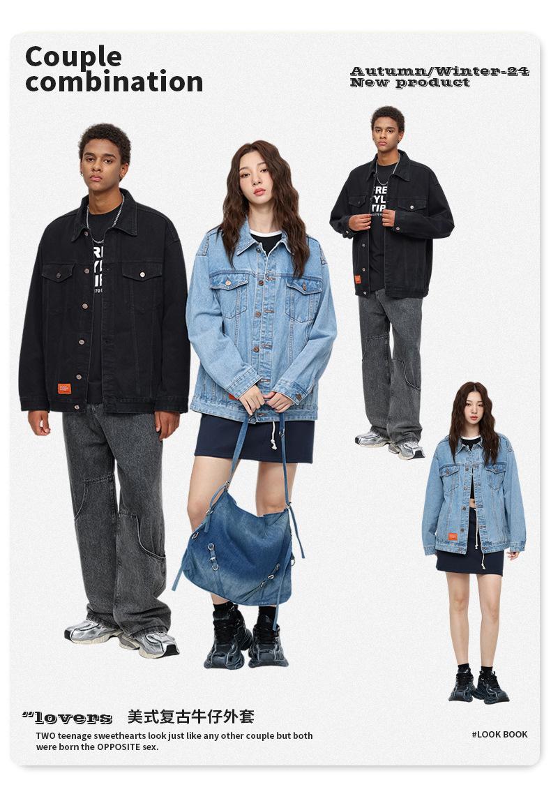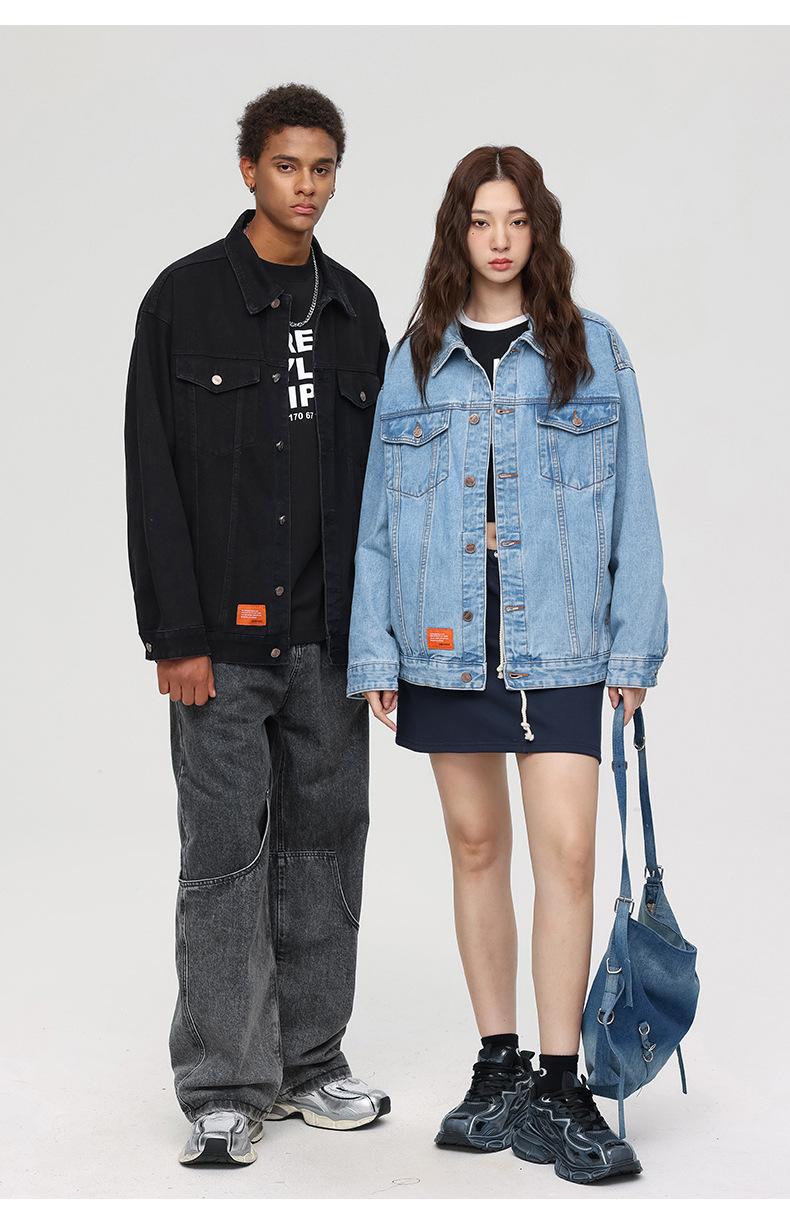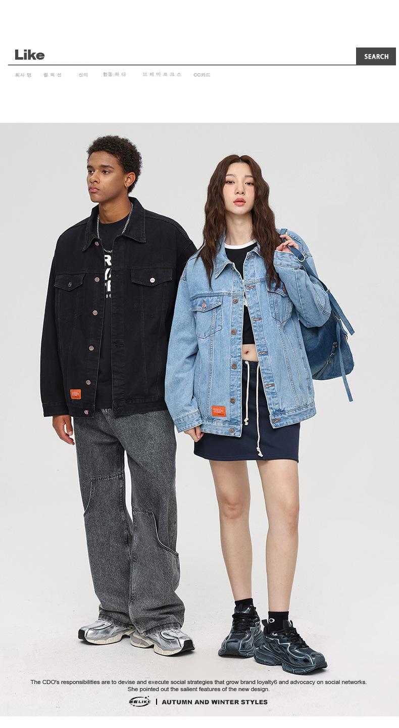 Esta jaqueta jeans da moda é mais larga do que os tamanhos normais, então pode ser mais adequada se você escolher um tamanho menor do que o seu tamanho original.
