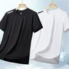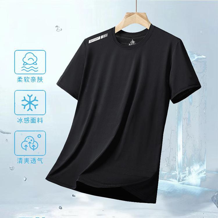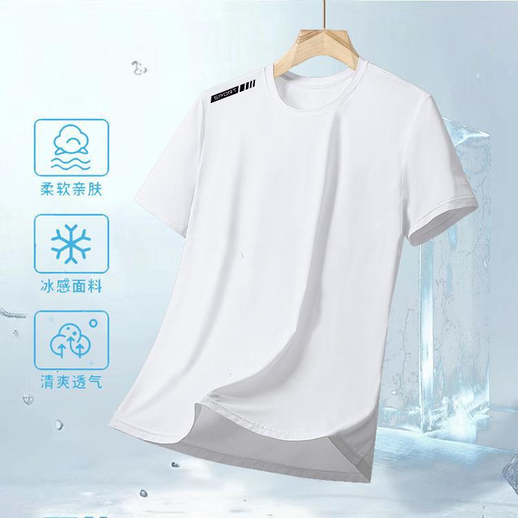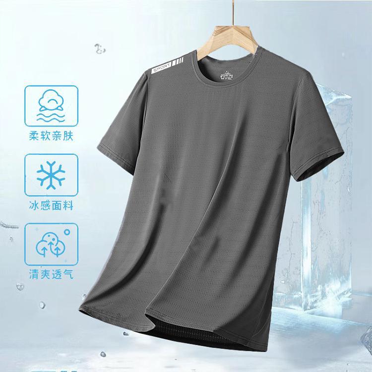 Camiseta de seda gelada de verão masculina, gola redonda, roupas de secagem rápida, manga curta, fina, respirável, meia manga, tamanho grande, top esportivo masculino, solto, moderno