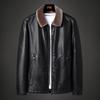 Jaqueta de couro masculina de outono e inverno nova jaqueta de couro macio de lapela masculina de meia-idade jaqueta de couro forrada de lã casual de negócios
