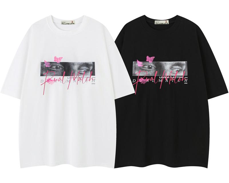 Compre Estilo americano Retro Criativo Niche Design Sense Camiseta de manga curta para homens e mulheres Verão Novo Casual Solto Casal Camisa de meia manga no atacado no Joom.pro