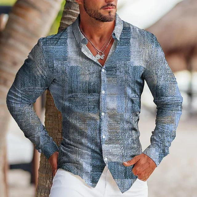 2023 Comércio Exterior Transfronteiriço Nova Moda de Rua Europeu e Americano Juventude Camisa de Manga Comprida Impressão 3D Casual Slim-fit Masculino Irregular