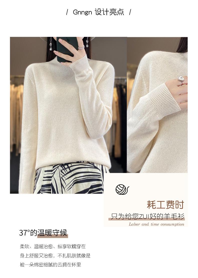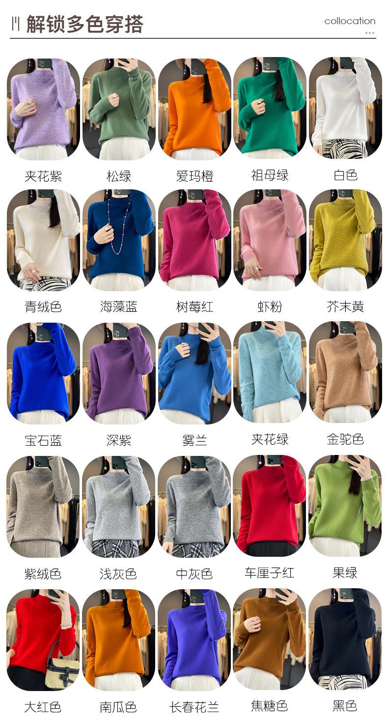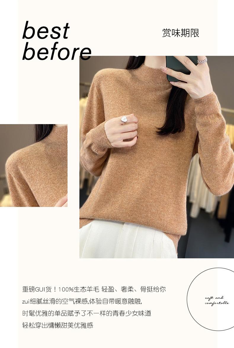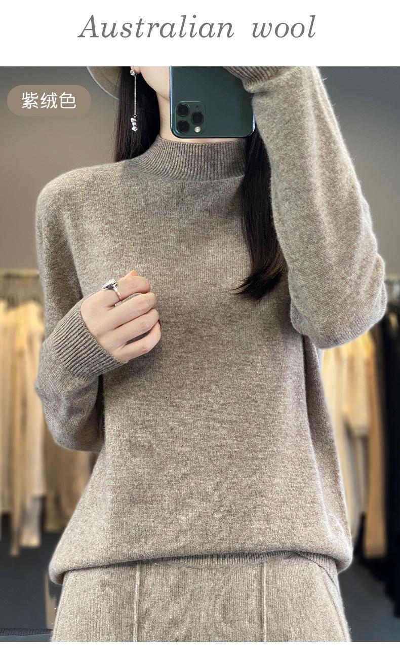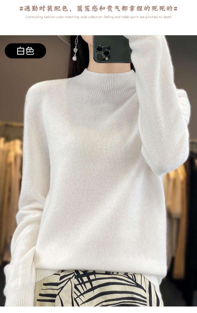 Compre Camisola de lã pura de primeira linha para roupas de malha Camisola de malha feminina de gola alta Camisa de base solta de gola alta outono e inverno nova camisola de cor sólida no atacado no Joom.pro