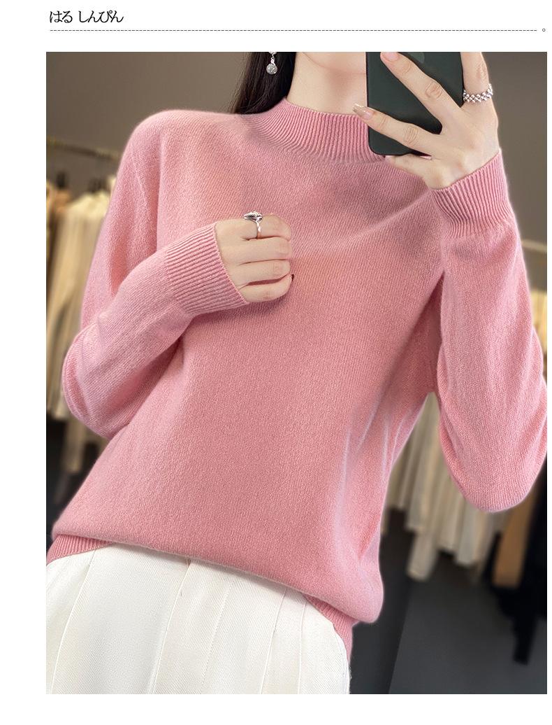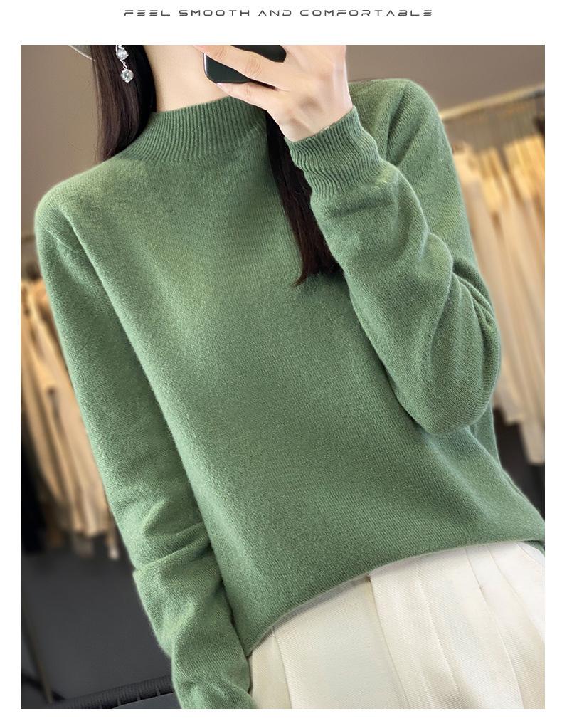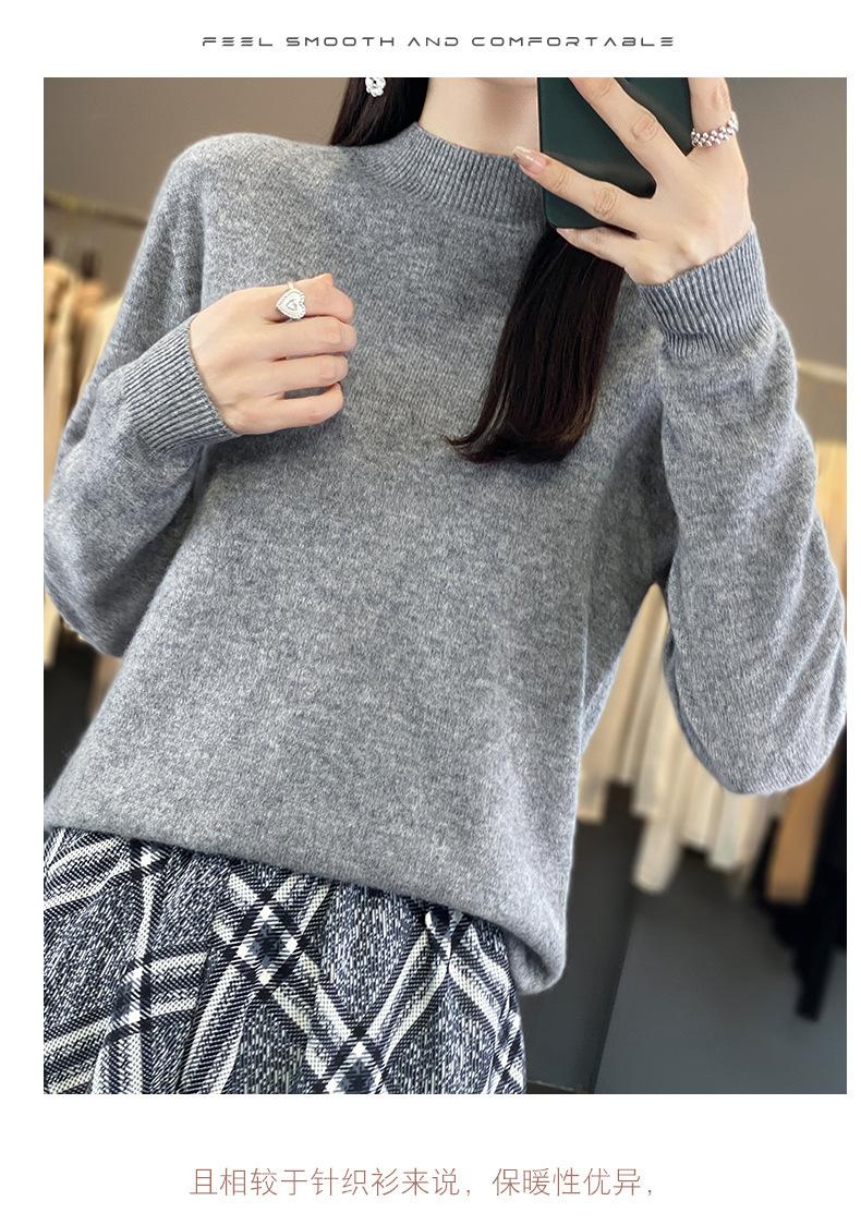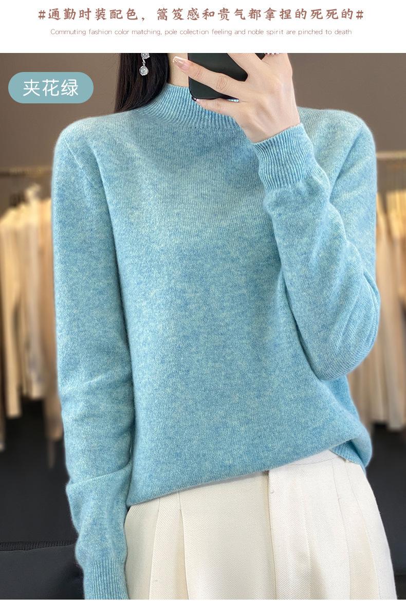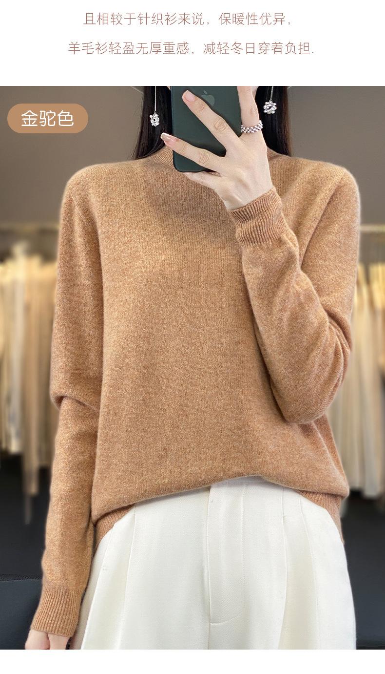 Compre Camisola de lã pura de primeira linha para roupas de malha Camisola de malha feminina de gola alta Camisa de base solta de gola alta outono e inverno nova camisola de cor sólida no atacado no Joom.pro