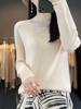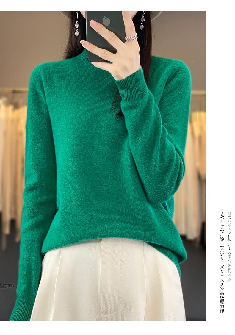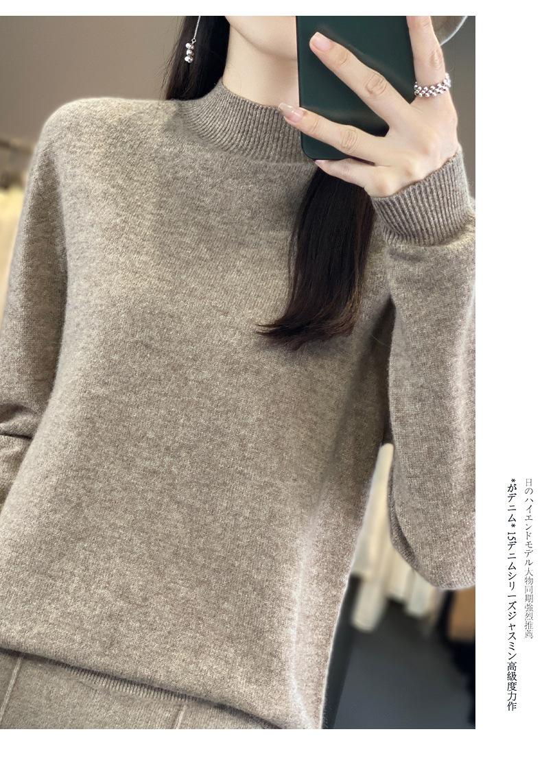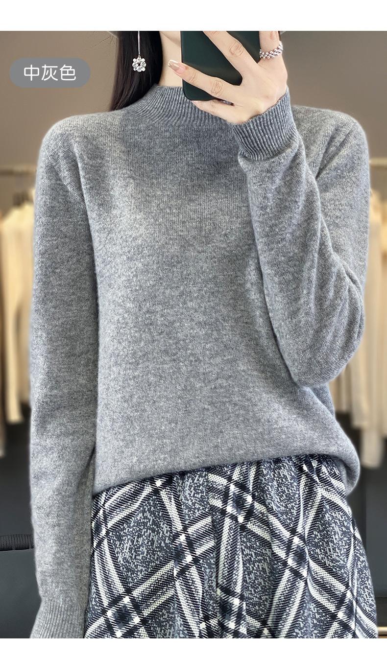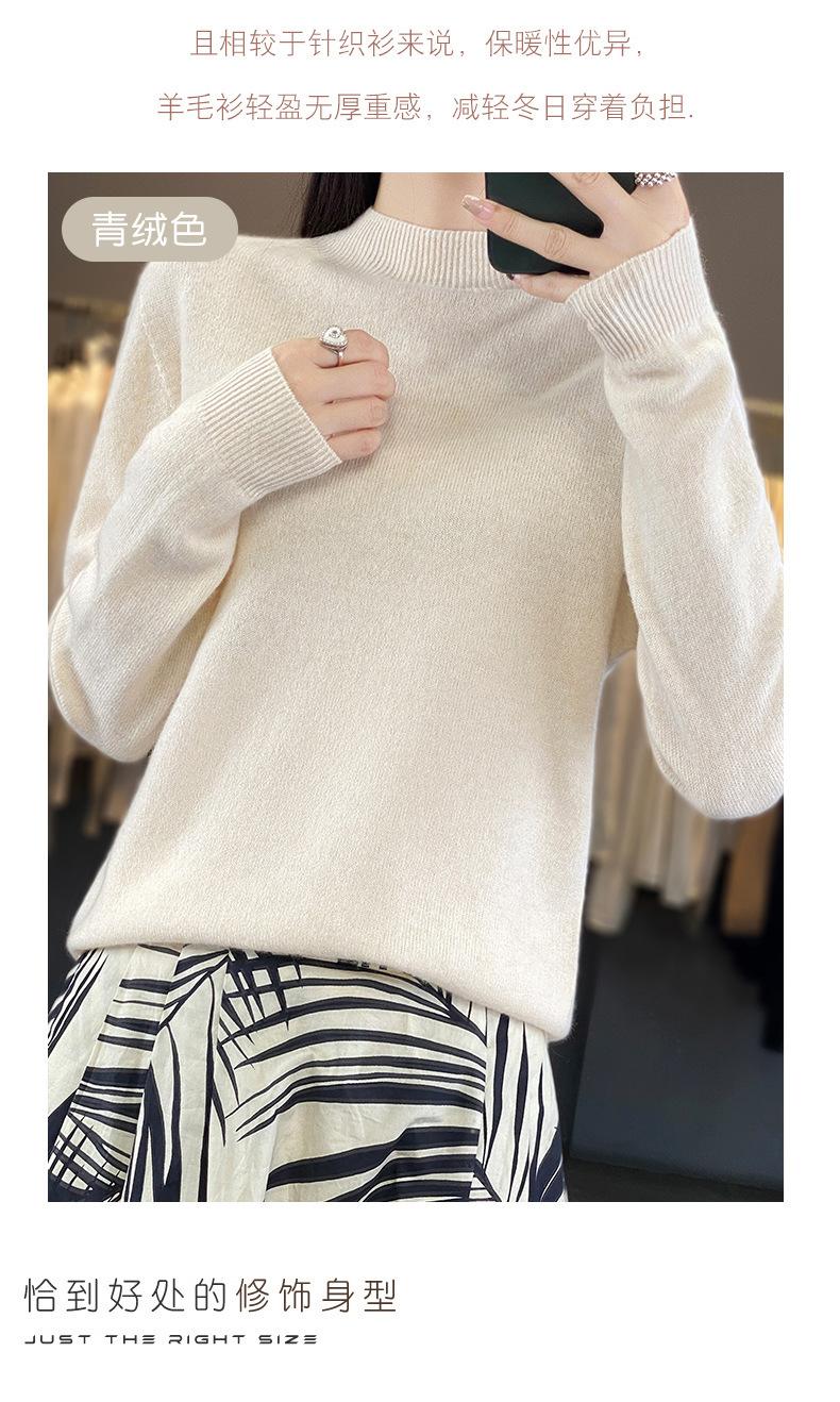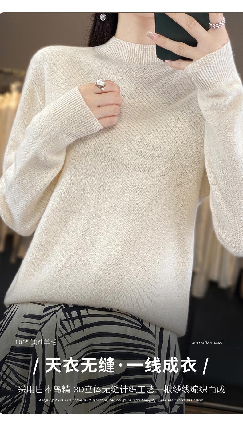 Compre Camisola de lã pura de primeira linha para roupas de malha Camisola de malha feminina de gola alta Camisa de base solta de gola alta outono e inverno nova camisola de cor sólida no atacado no Joom.pro