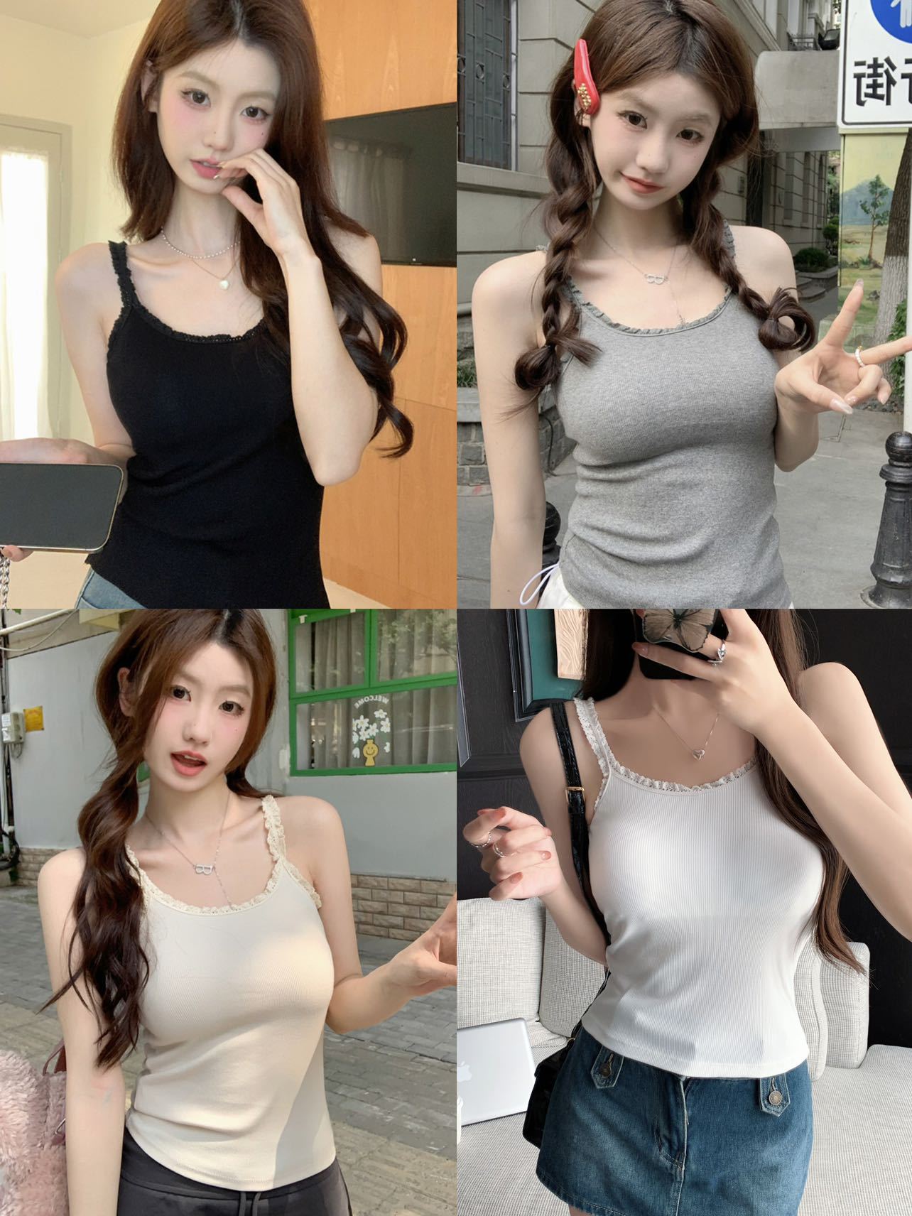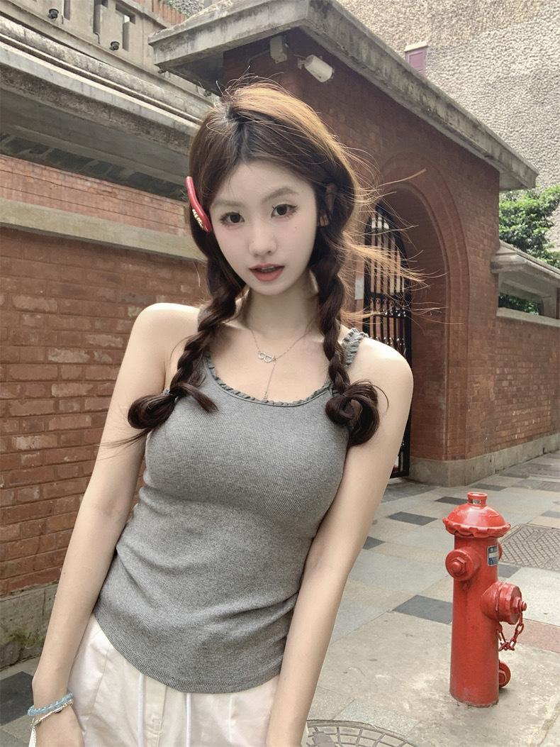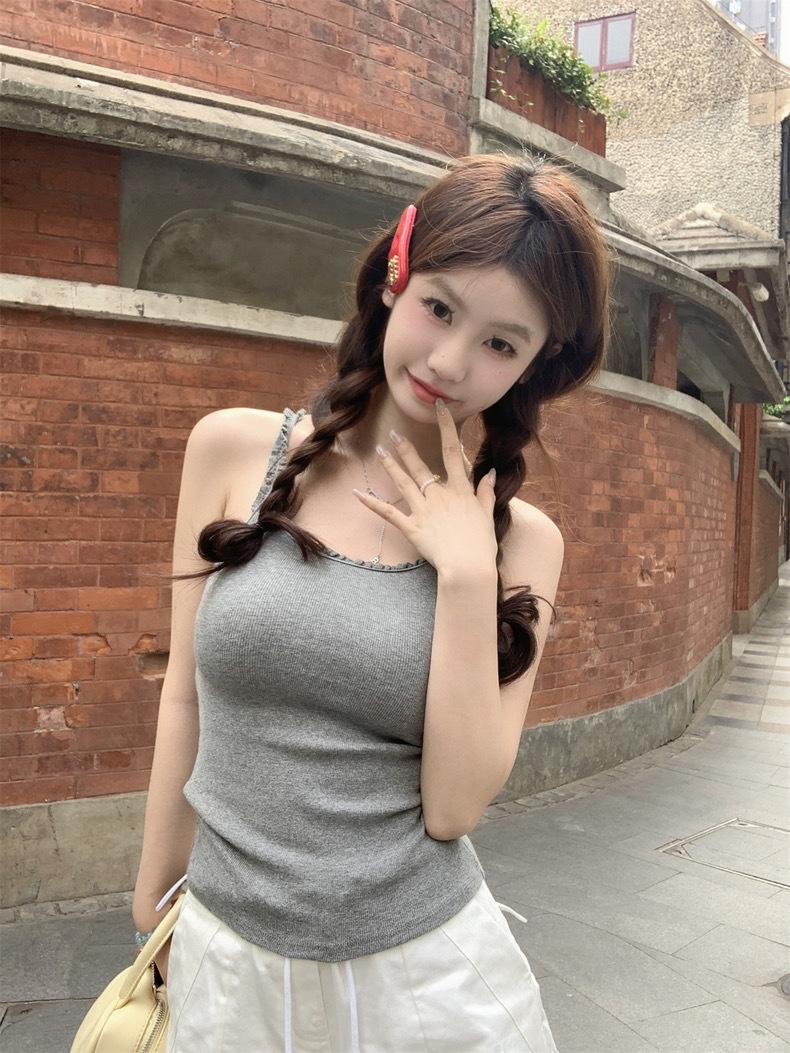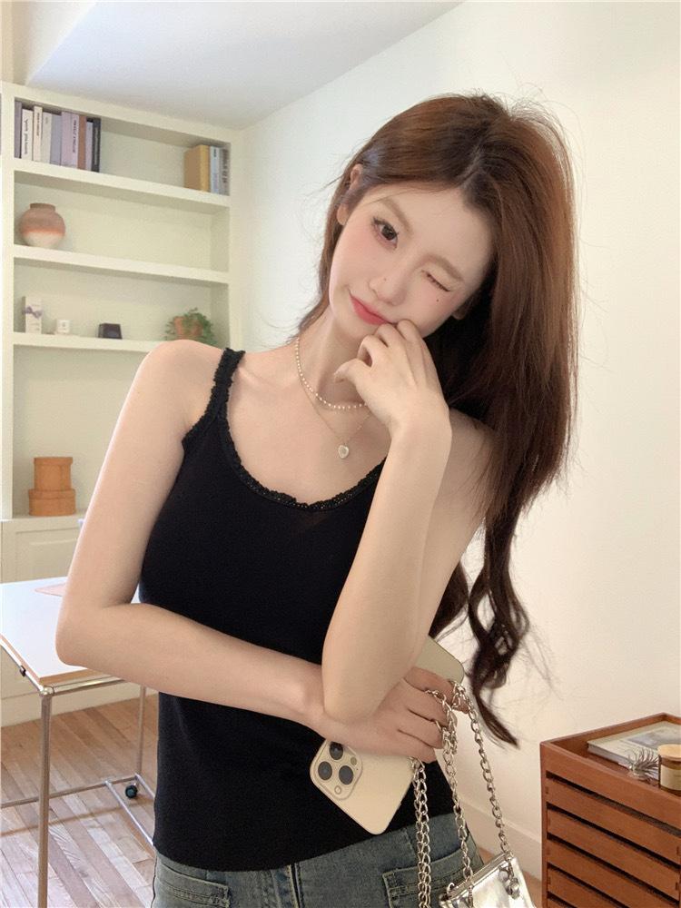 Lindo Puro Desejo Estilo Lace Costura Camisola Verão Feminino Slim-fit Emagrecimento Curto Desgaste Externo Top Interno