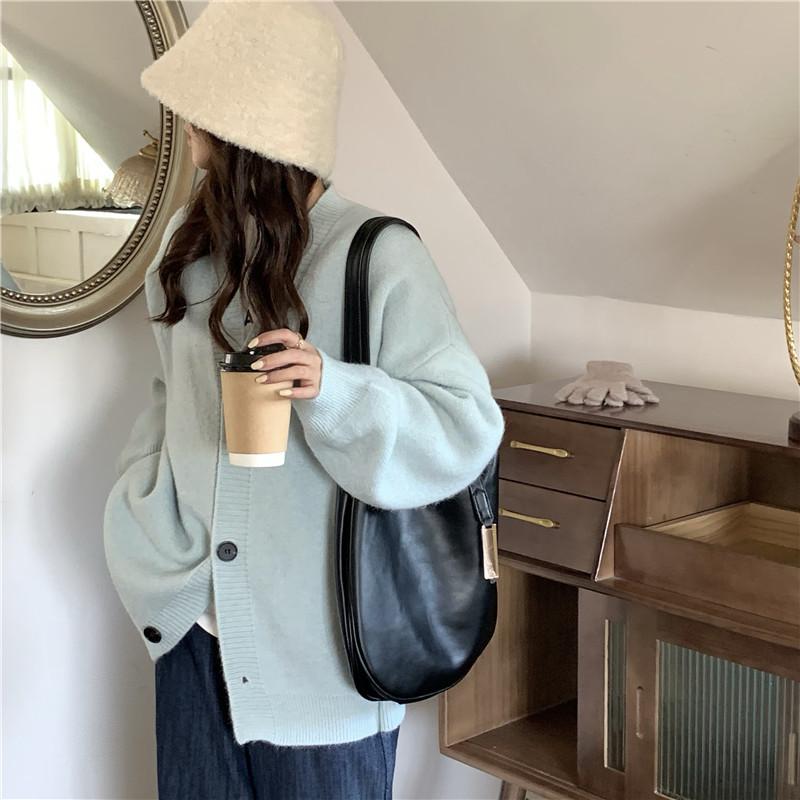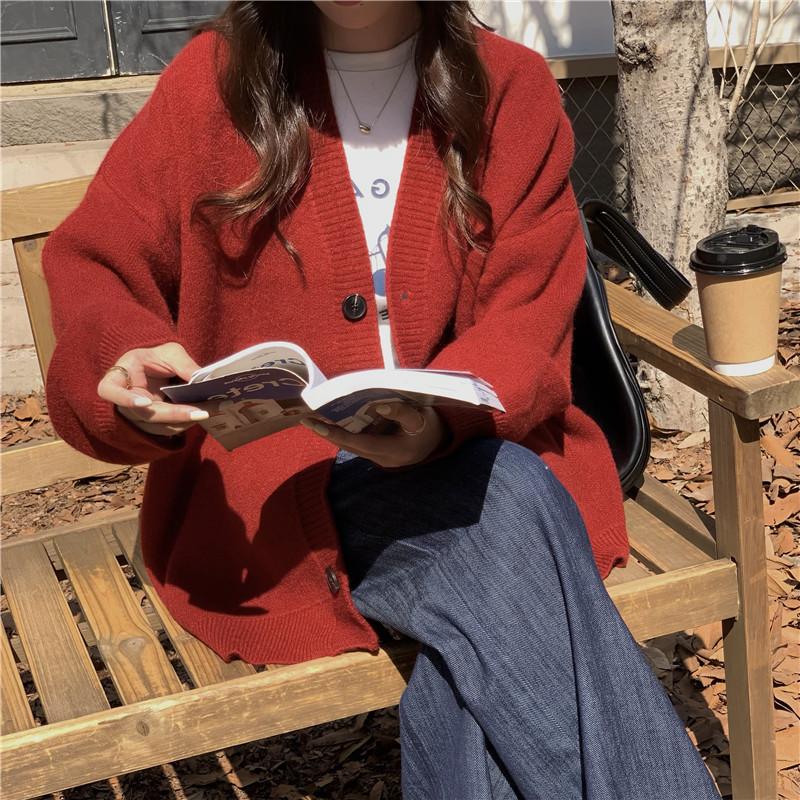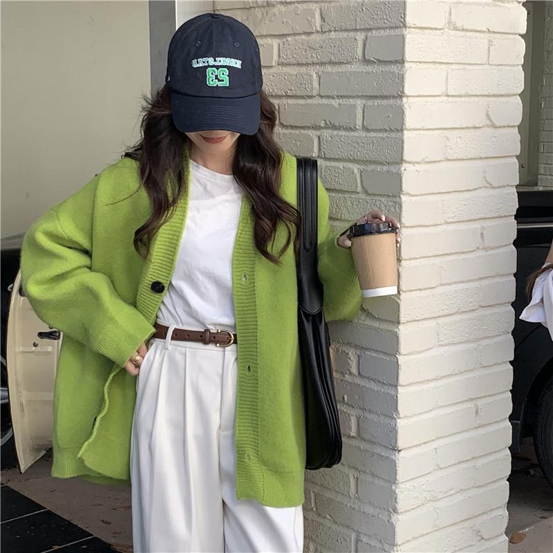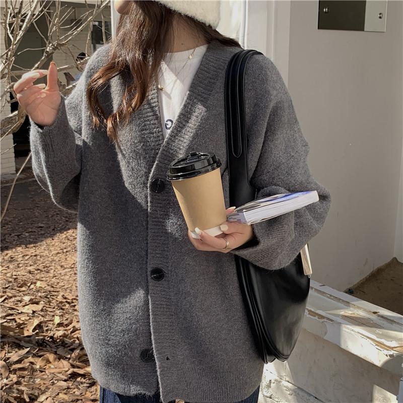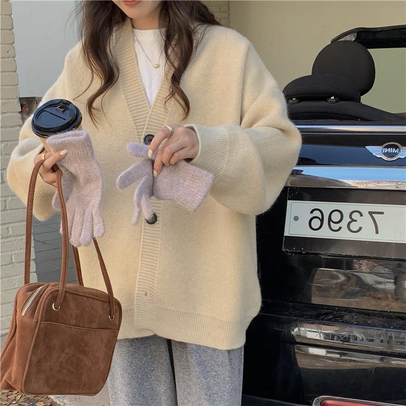 Novo Outono e Inverno 2023 Estilo Coreano Decote em V Cardigan de Tricô Suave Jaqueta Solta Moderna Estilo Preguiçoso Suéter Macio e Encerado para Mulheres