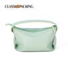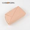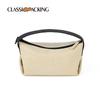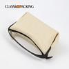 | Saco de armazenamento de cosméticos de lona de algodão ecologicamente correto grão de madeira real colorblock zíper saco de lavagem de viagem em forma de concha saco de cosméticos |