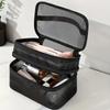 | Simples cor sólida zíper saco de armazenamento de higiene pessoal quadrado à prova dwaterproof água portátil saco de armazenamento dupla face couro pu saco de cosméticos de viagem |