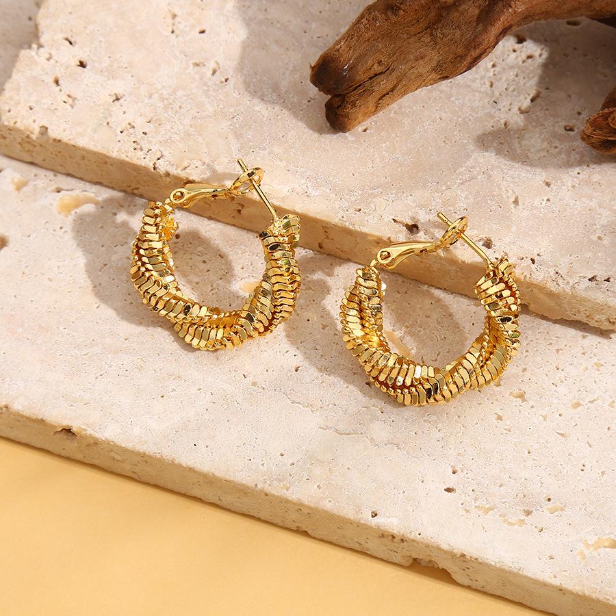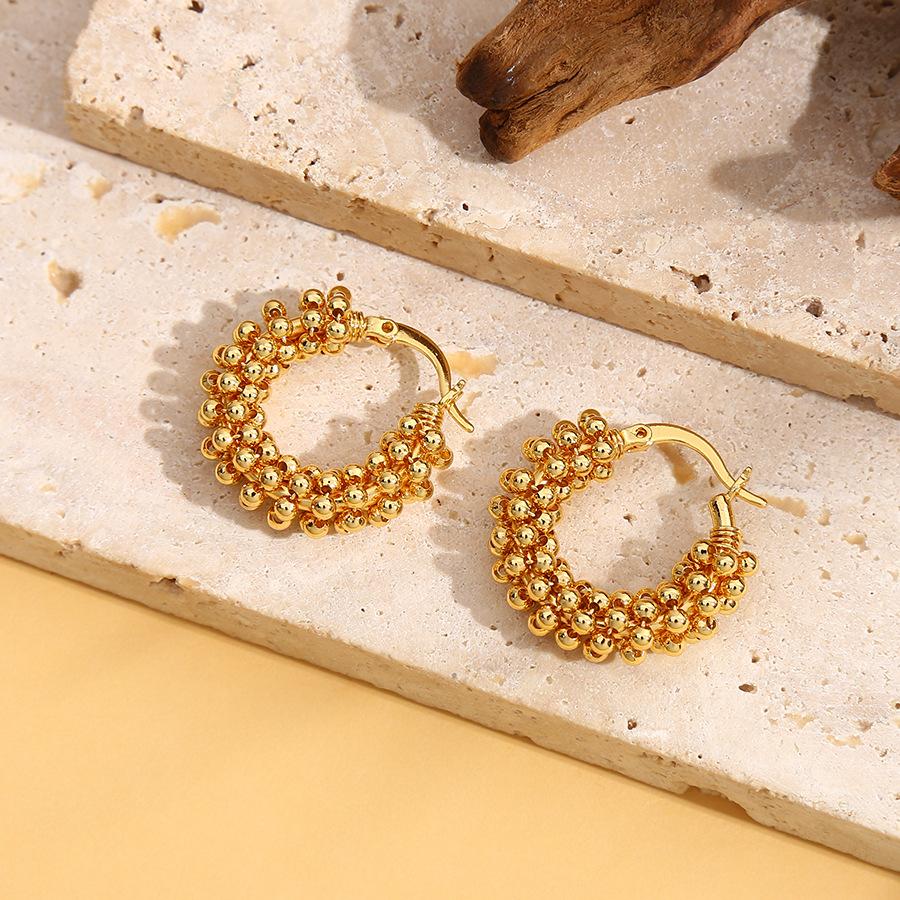 Brincos de Argola Envoltos em Miçangas Douradas para Mulheres, Design de Nicho Francês, Banhados a Cobre Vintage com Ouro Real, Brincos de Pino Versáteis e da Moda, Brincos, Fechos de Orelha