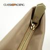 | Saco de armazenamento de cosméticos de lona de algodão ecologicamente correto grão de madeira real colorblock zíper saco de lavagem de viagem em forma de concha saco de cosméticos |
