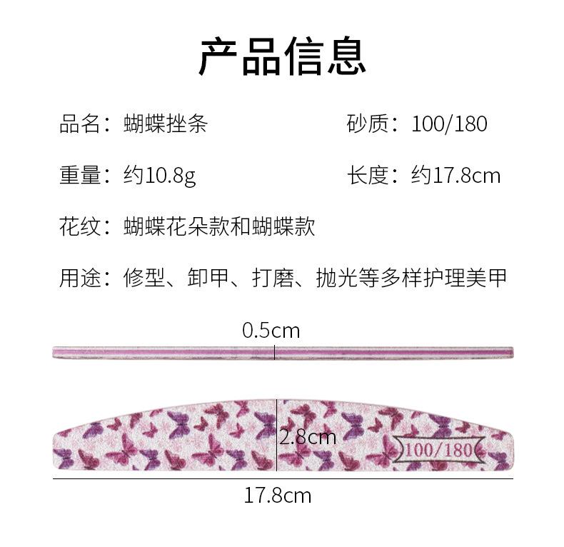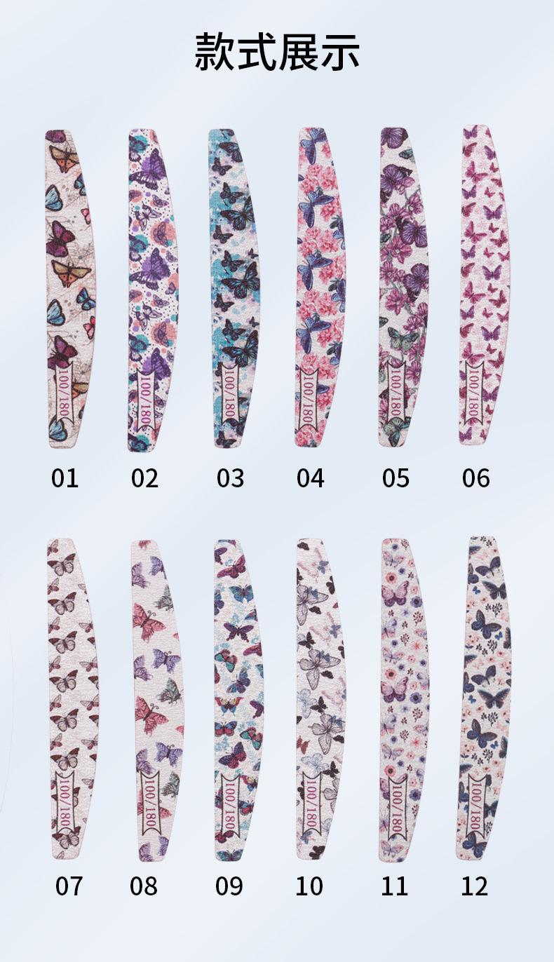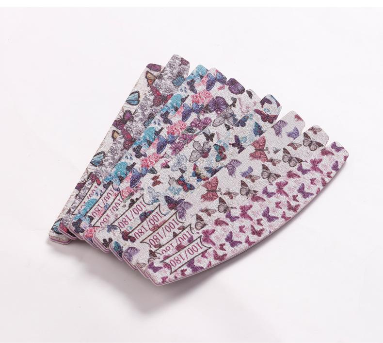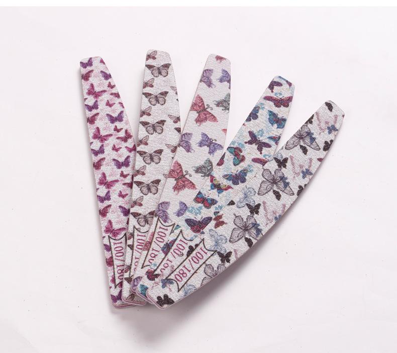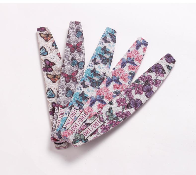 Cross-border para impressão de lixa de unha meia-lua, tira de moagem de flor de borboleta, polimento de dupla face, tipo de reparo de unha