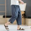Calças Mid-Length de Algodão e Linho de Verão para Homem Casual Tamanho Grande Masculino Cor Sólida Reta Cinco Pontos Linho Atacado Venda Quente