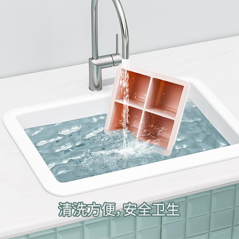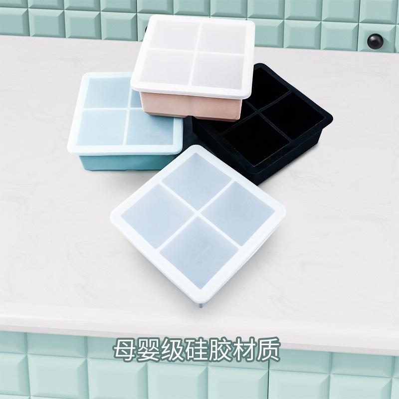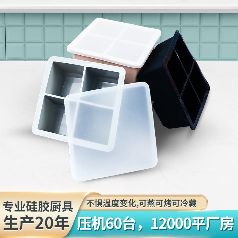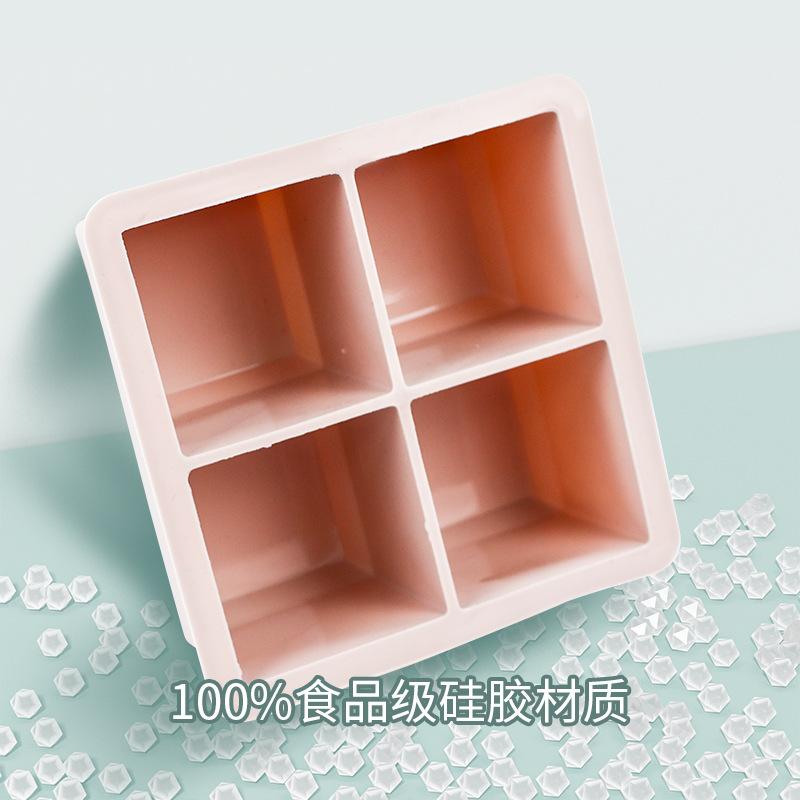 Atacado Pontual Molde de Bandeja de Gelo de Quatro Compartimentos Silicone de Qualidade Alimentar Fabricador de Gelo Doméstico Whisky Quadrado Cubos de Gelo Caseiros