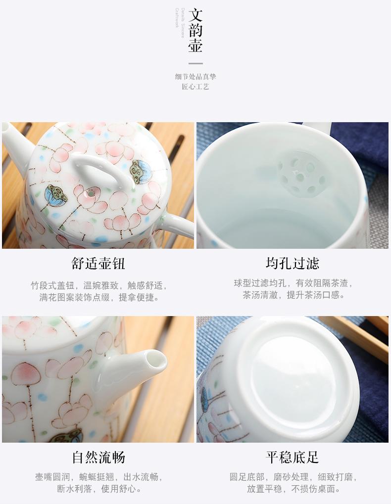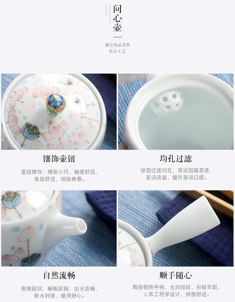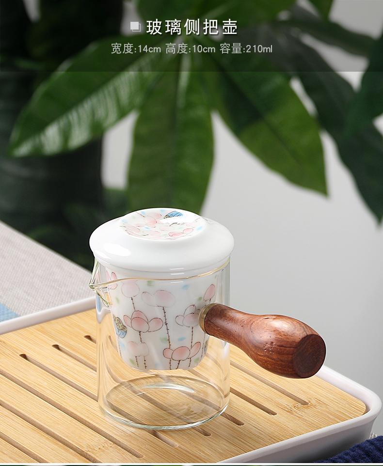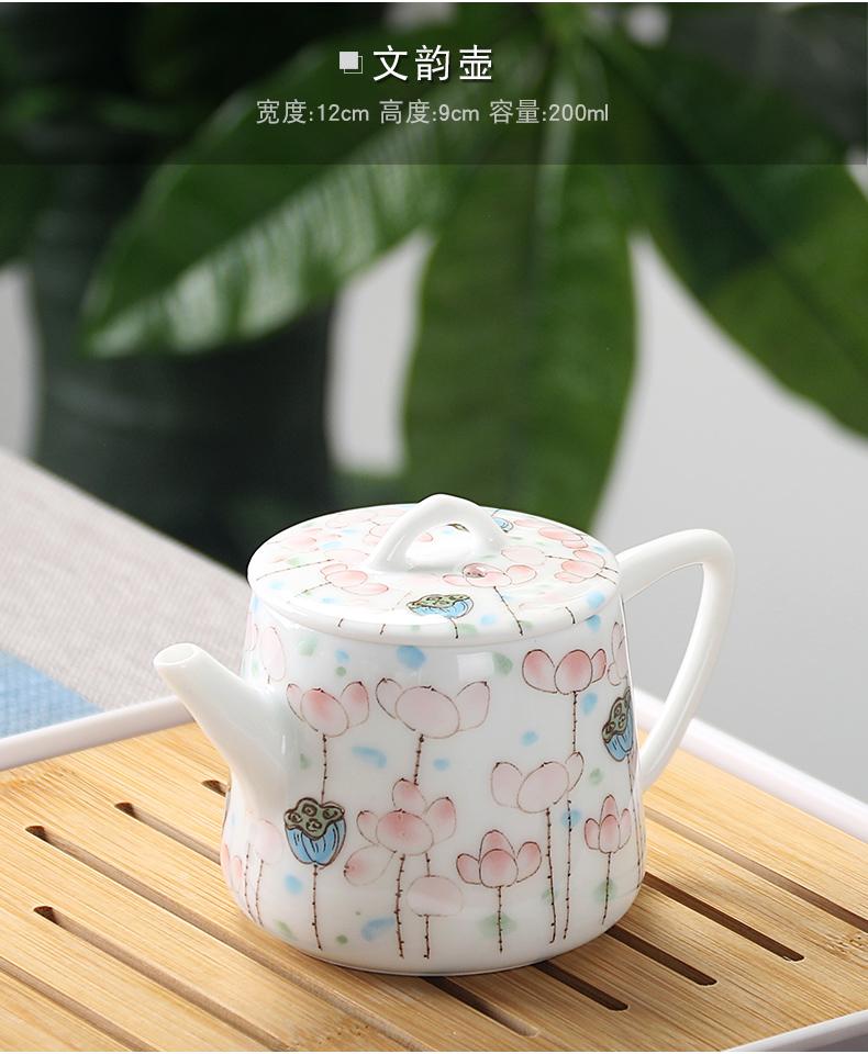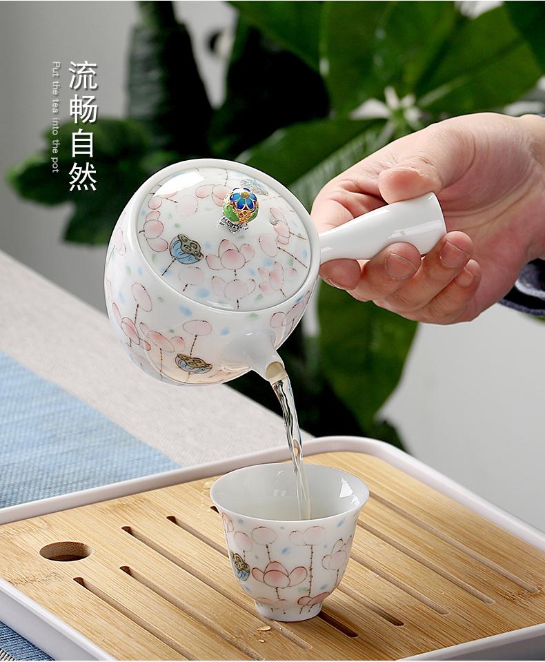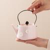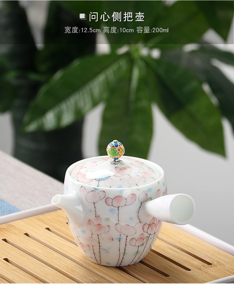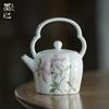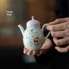 Bule de Cerâmica Zhuozhong Conjunto de Chá de Kung Fu Doméstico Bule de Porcelana Branca Vaso Único Flores Pastel Florescendo Vaso de Vidro Lateral
