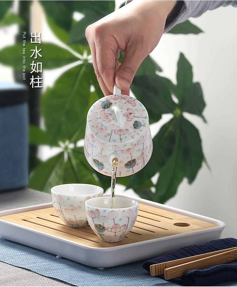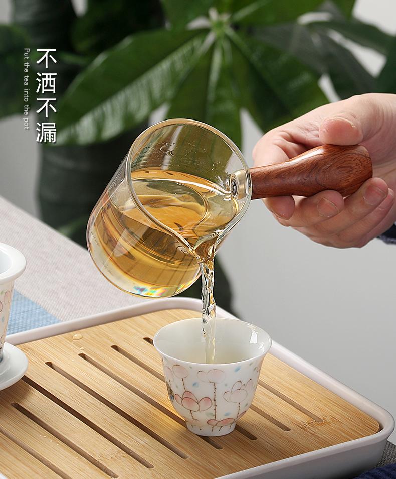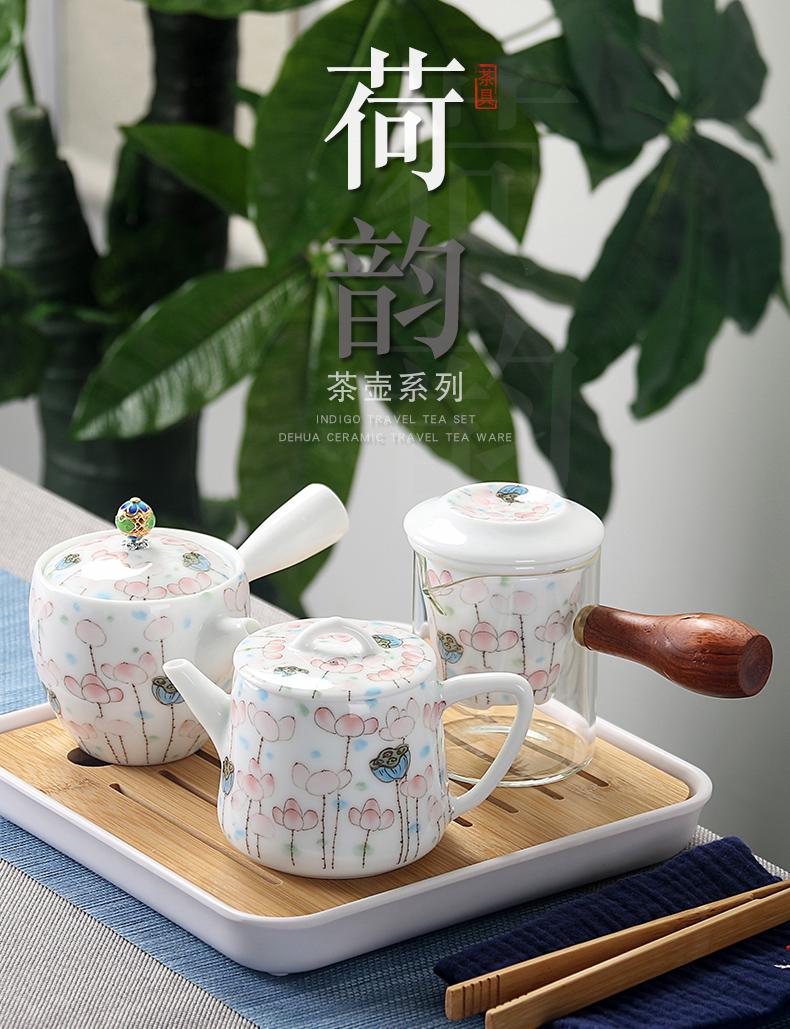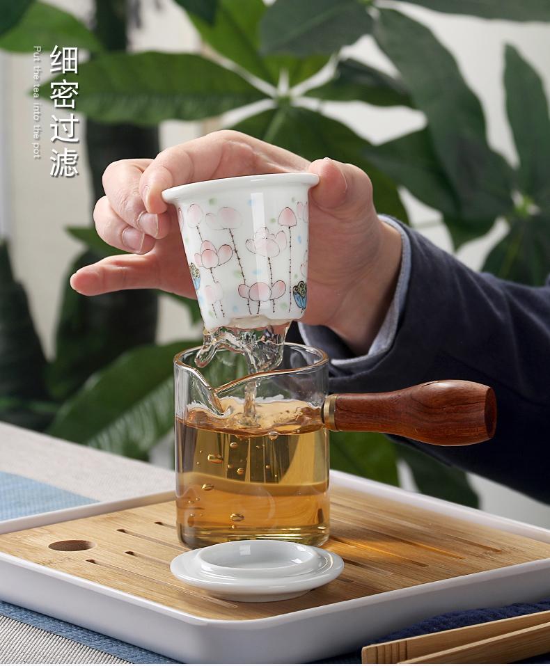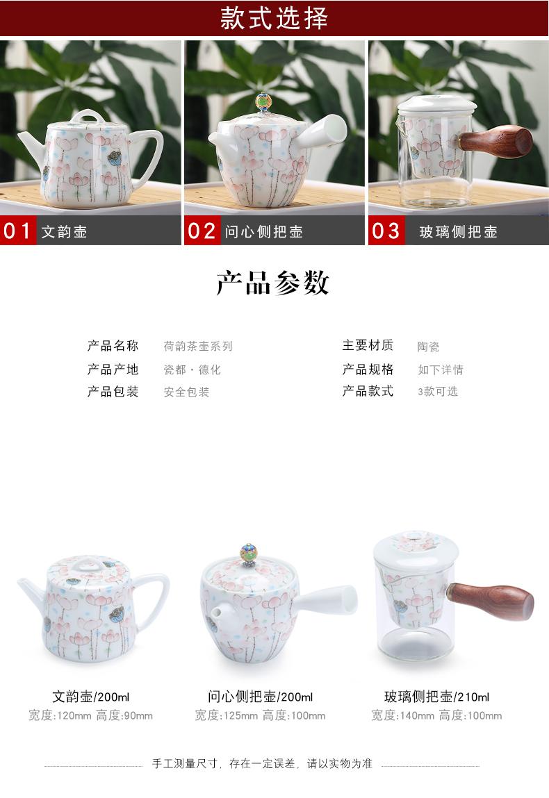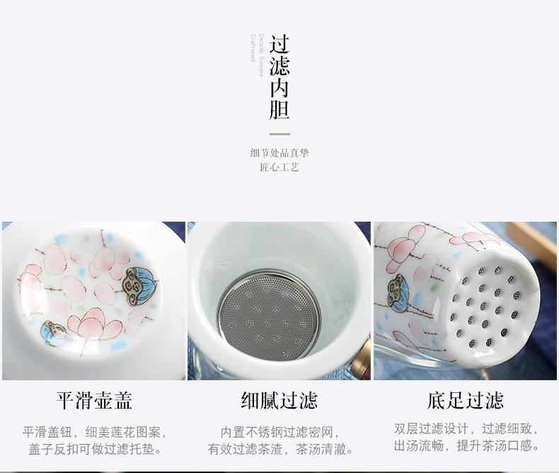 Bule de Cerâmica Zhuozhong Conjunto de Chá de Kung Fu Doméstico Bule de Porcelana Branca Vaso Único Flores Pastel Florescendo Vaso de Vidro Lateral