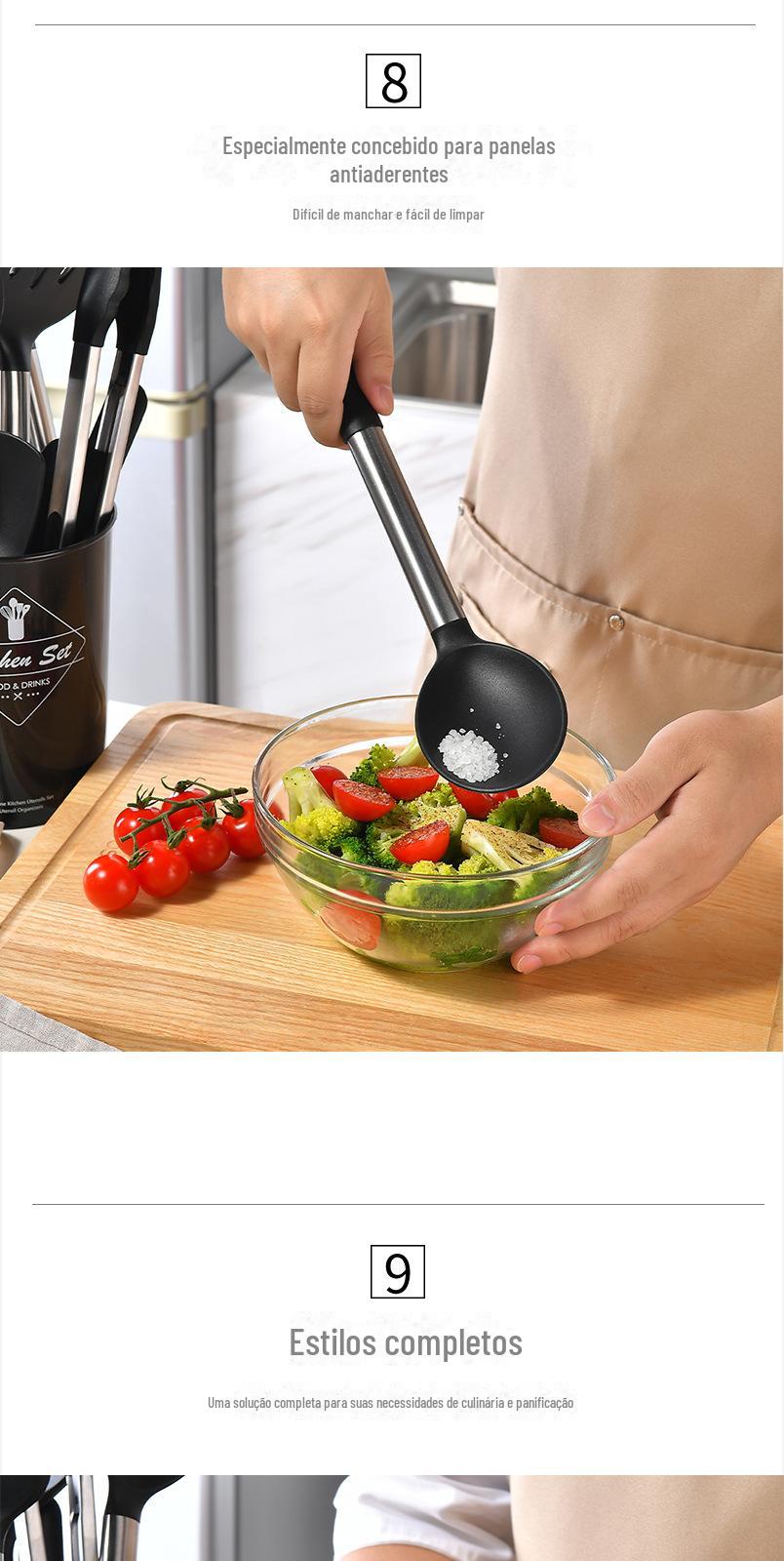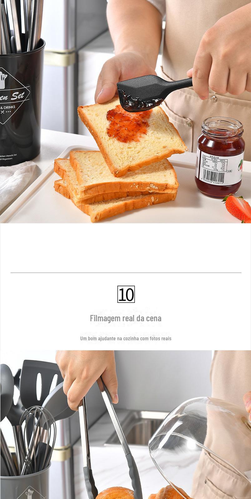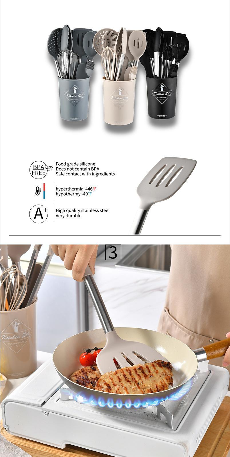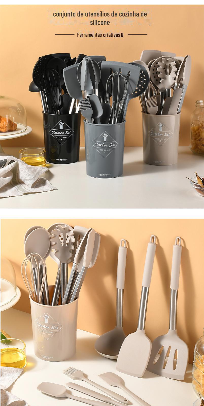 Conjunto de 15 peças de utensílios de cozinha de silicone de aço inoxidável transfronteiriço com balde de armazenamento espátula de cozinha conjunto de cozinha
