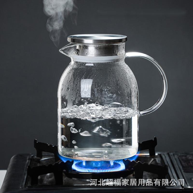 Chaleira de vidro fria Chaleira de vidro doméstica Grande capacidade Alta temperatura Copo de água fria Bule de chá estilo nórdico adequado Chaleira de água fria