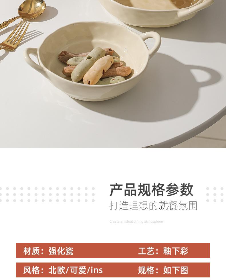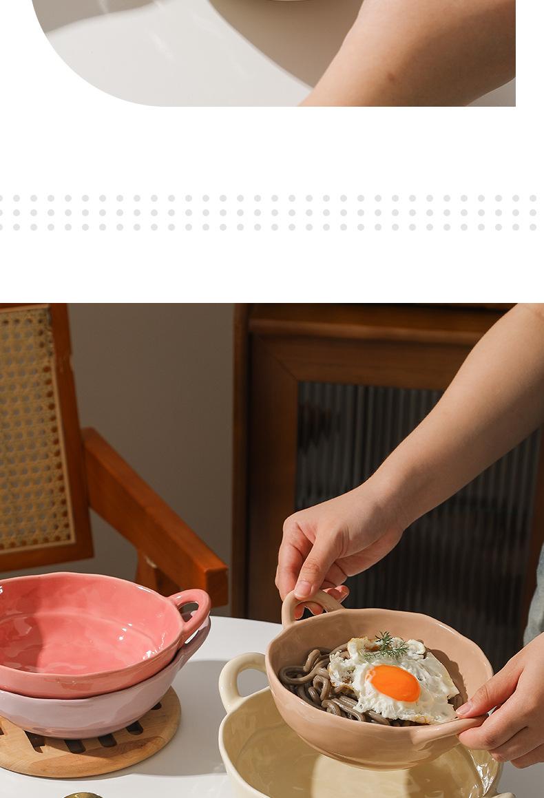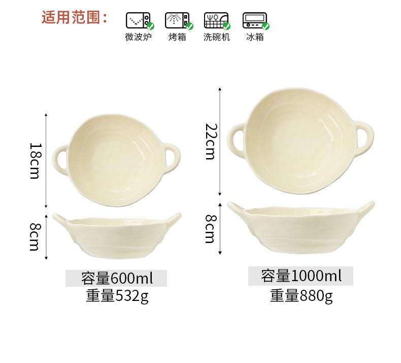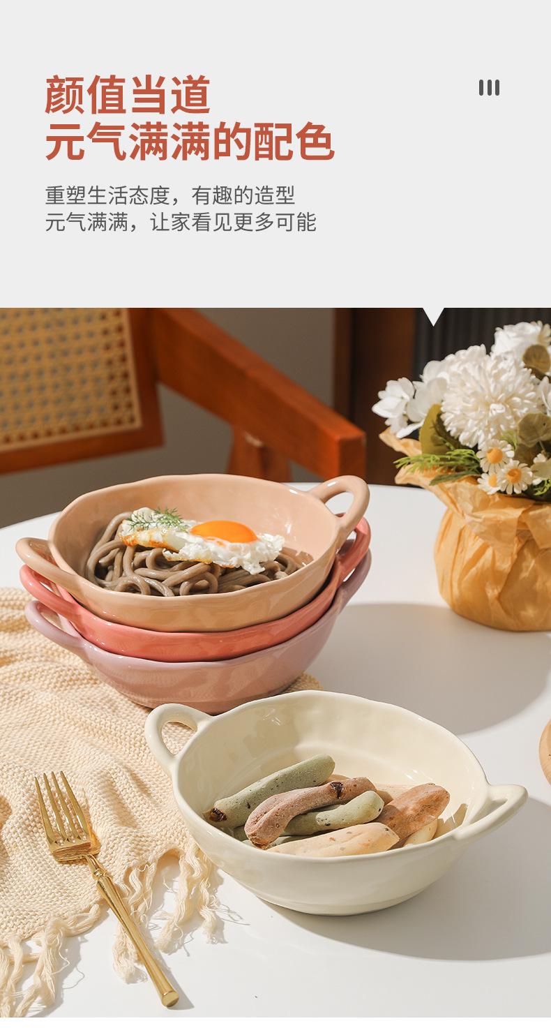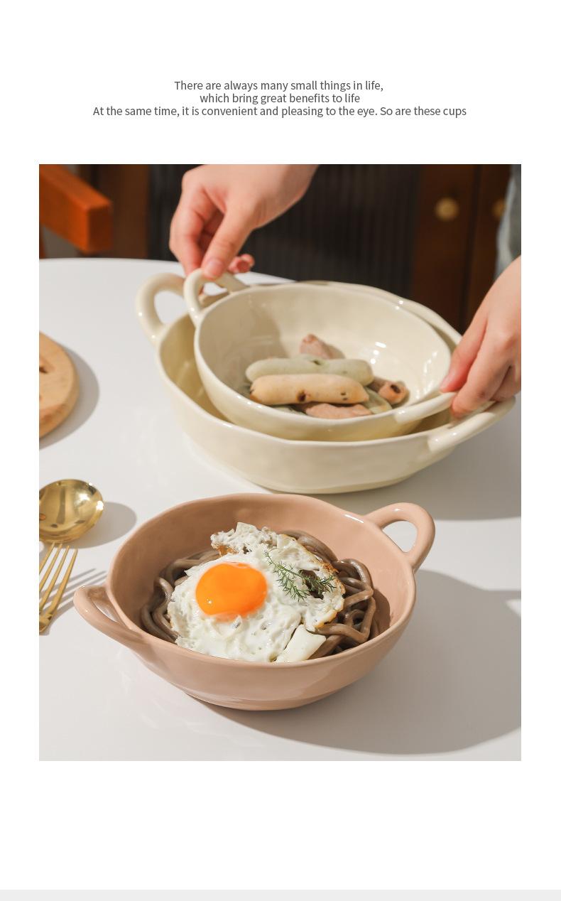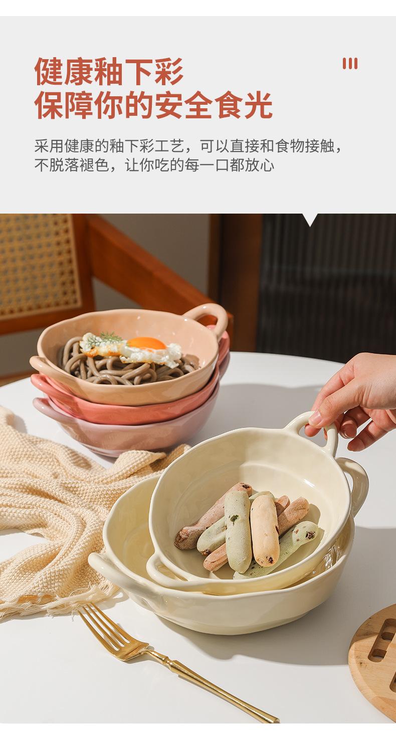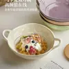Tigela de orelha dupla de alto valor, iogurte doméstico, salada, frutas, tigela de cerâmica, prato de sopa, pó de caracol, tigela de macarrão instantâneo