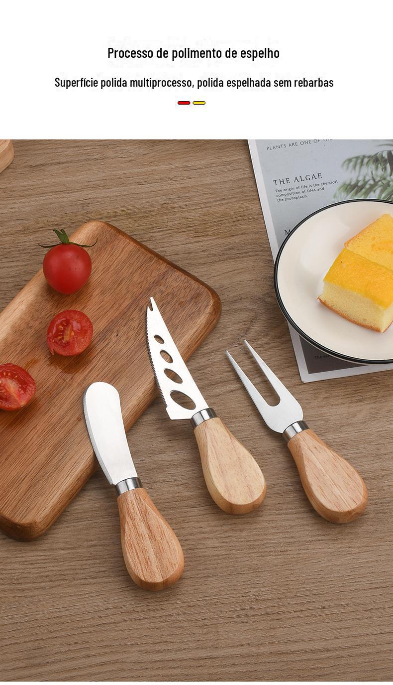 Terno de faca de queijo faca de queijo e garfo terno de aço inoxidável conjunto de três peças faca de queijo e garfo conjunto de quatro peças combinação de faca de manteiga