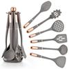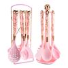 Transfronteiriço engrossado silicone utensílios de cozinha de ouro rosa alça 7 peças terno colher espátula com suporte de armazenamento terno de silicone