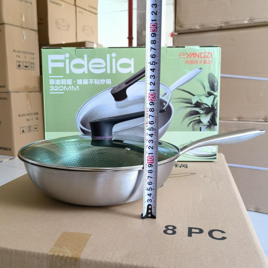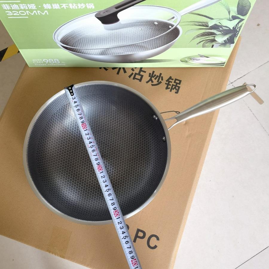 Nova Wok Antiaderente Wok Doméstica Wok de Aço Inoxidável 32cm Pan Fogão de Indução Fogão a Gás Adequado