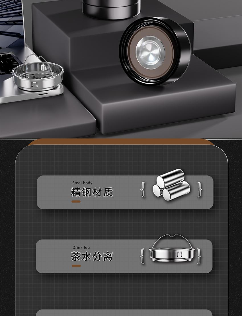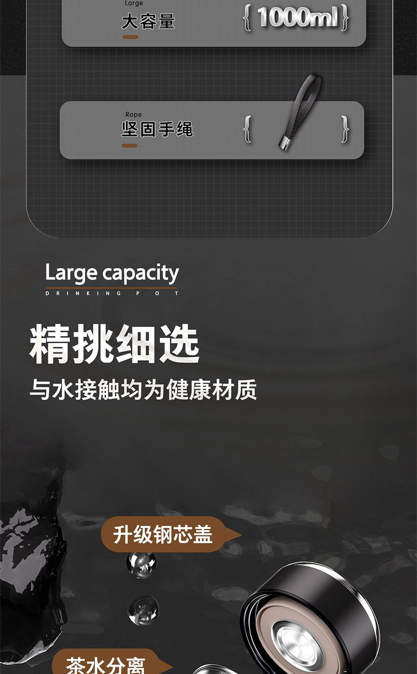 Copo térmico masculino resistente a quedas copo de água de grande capacidade de aço inoxidável para uso doméstico ao ar livre Chá Separação de água Novo portátil