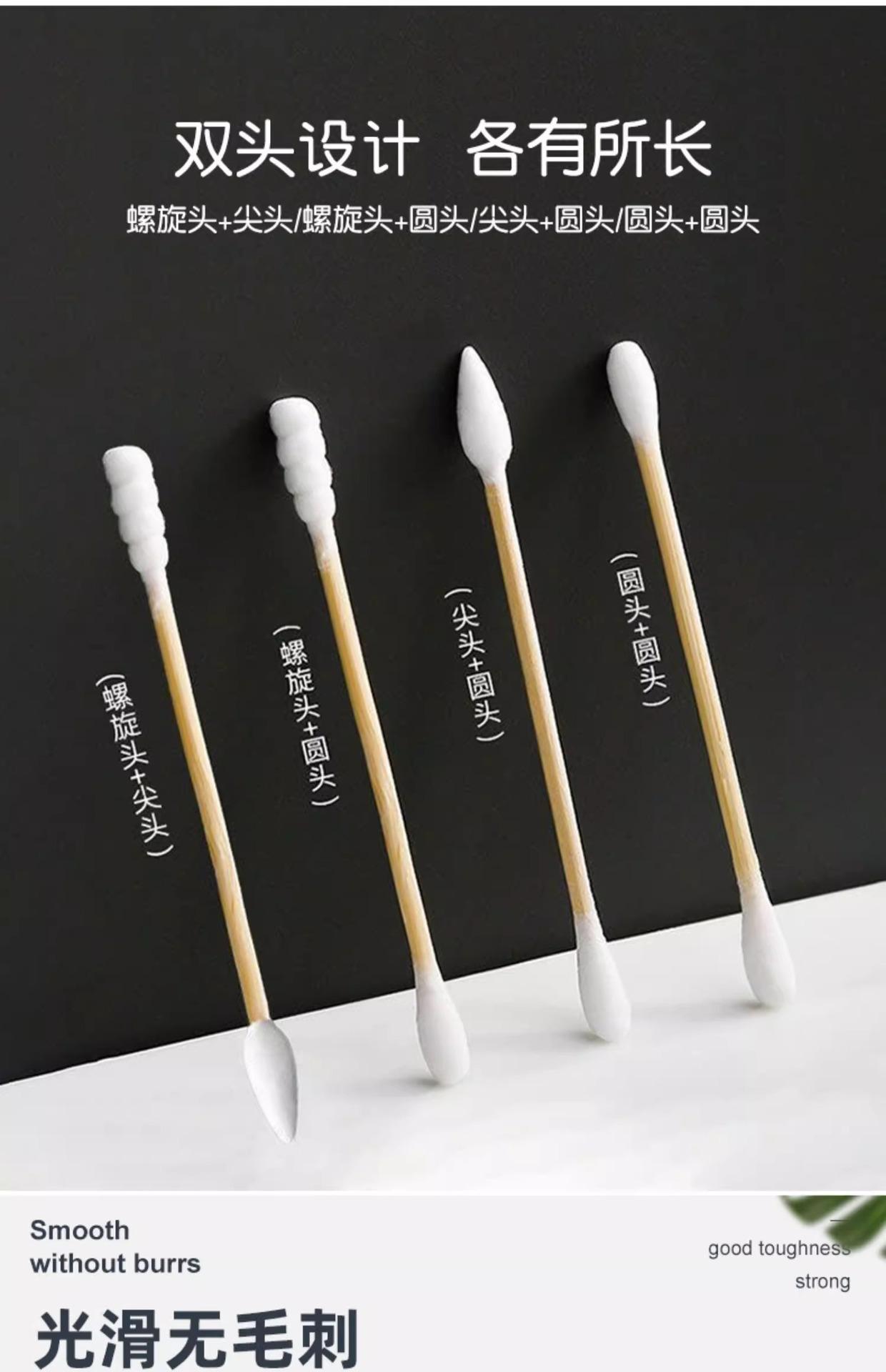 Cotonete de algodão de duas cabeças com maquiagem para puxar a orelha cotonete sanitário descartável para limpeza da colher de escavação da orelha cotonete de madeira cotonete de algodão espiral bola de algodão