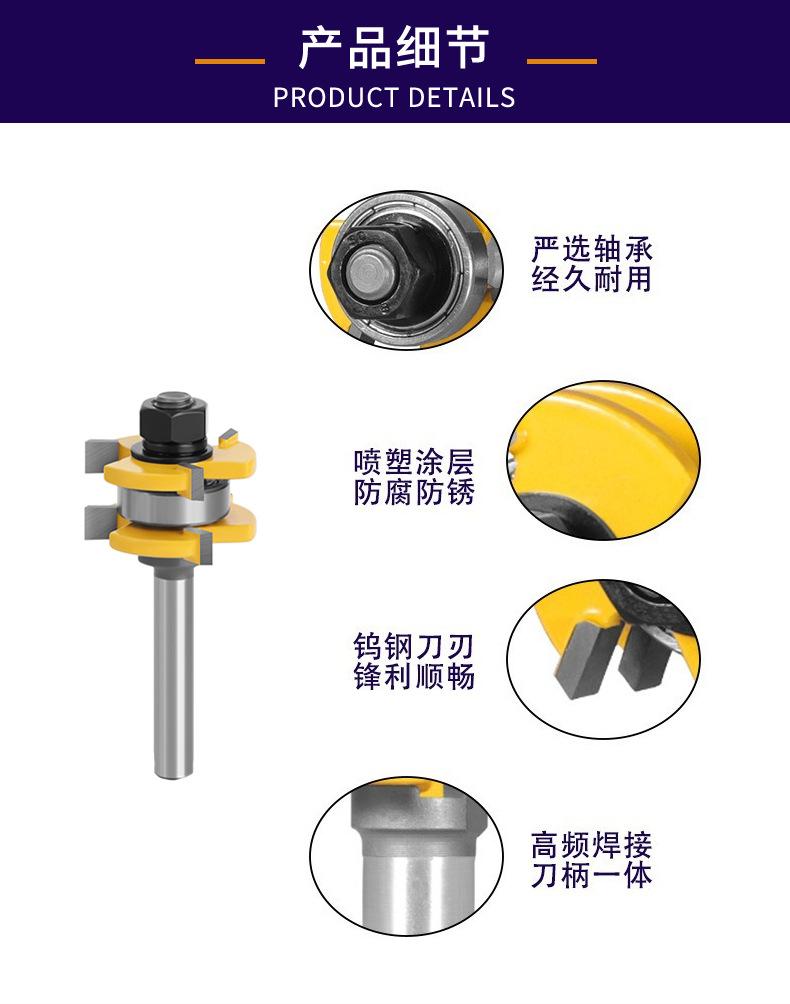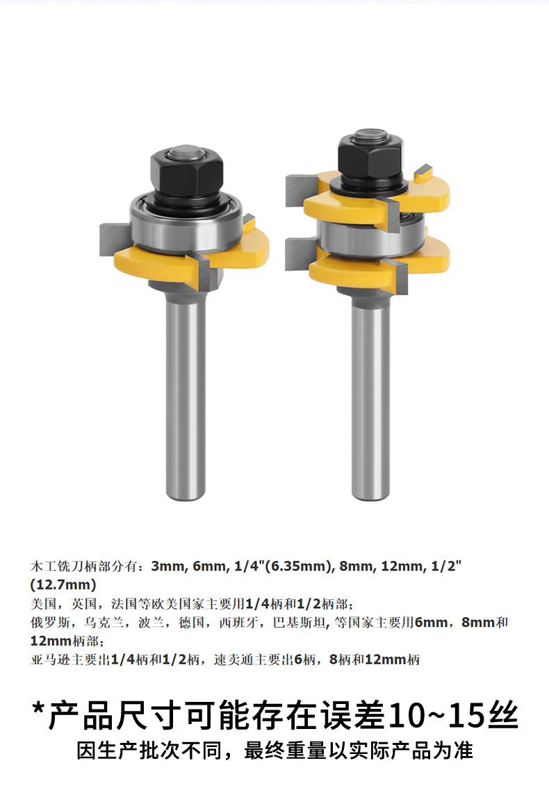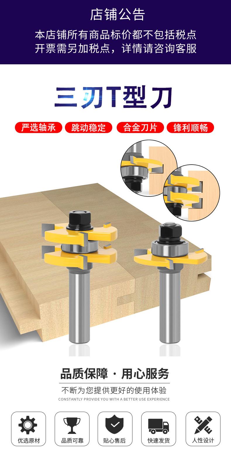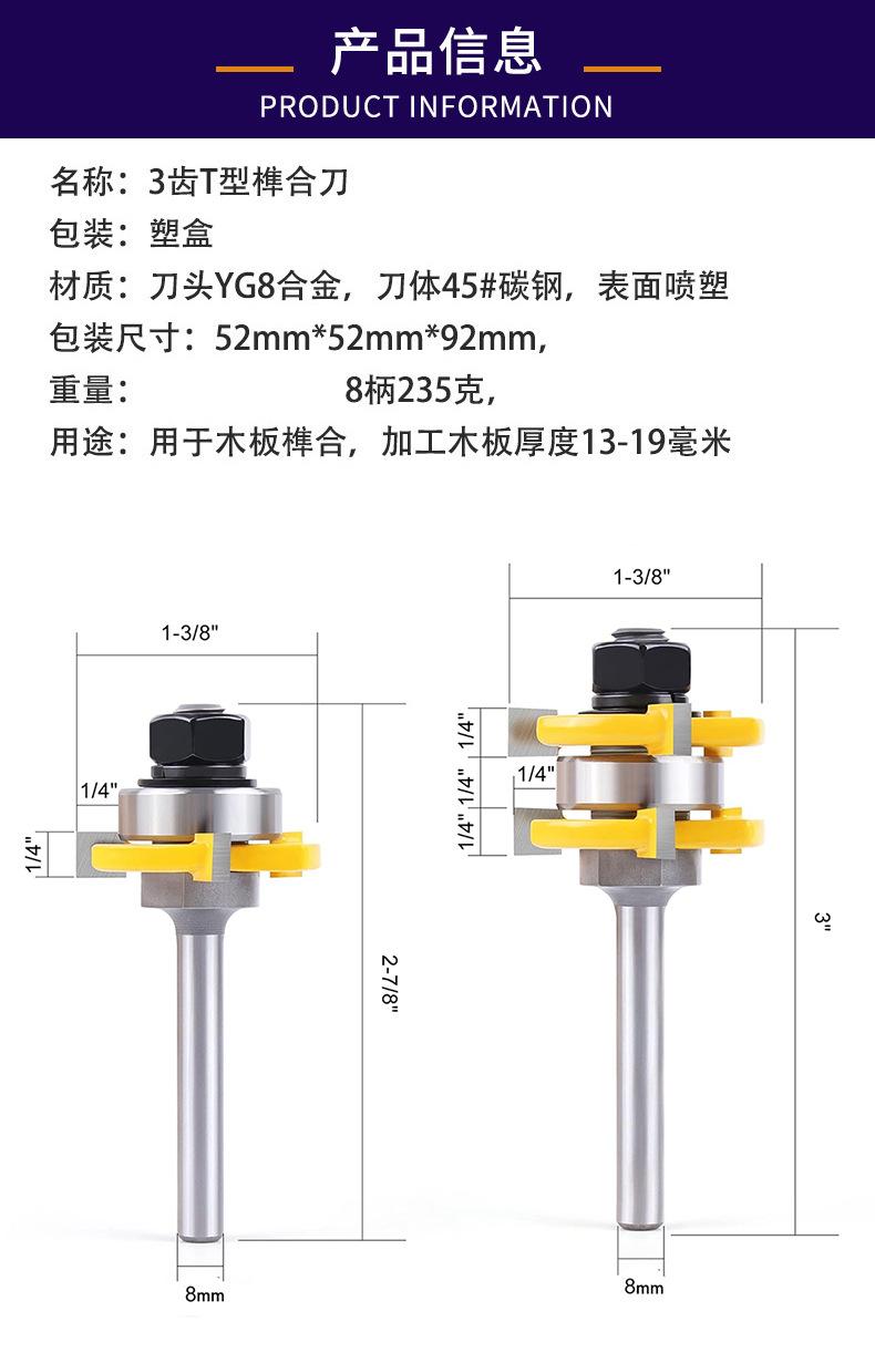 Cortador de encaixe e espiga em forma de T com três dentes, cabeça de corte de placa de três gumes com 8 cabos, cortador de piso, fresa de aço de tungstênio, fresa para trabalhar madeira