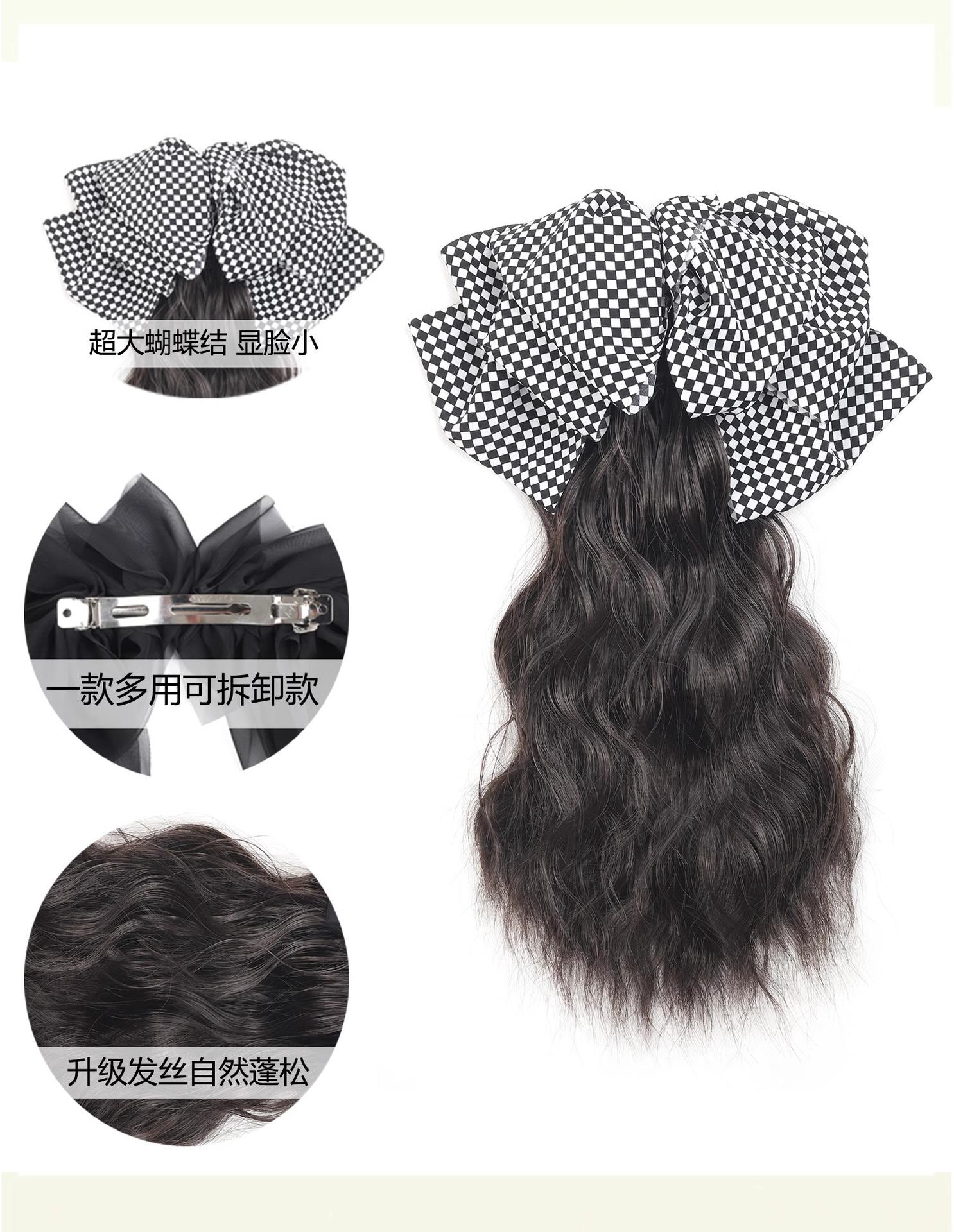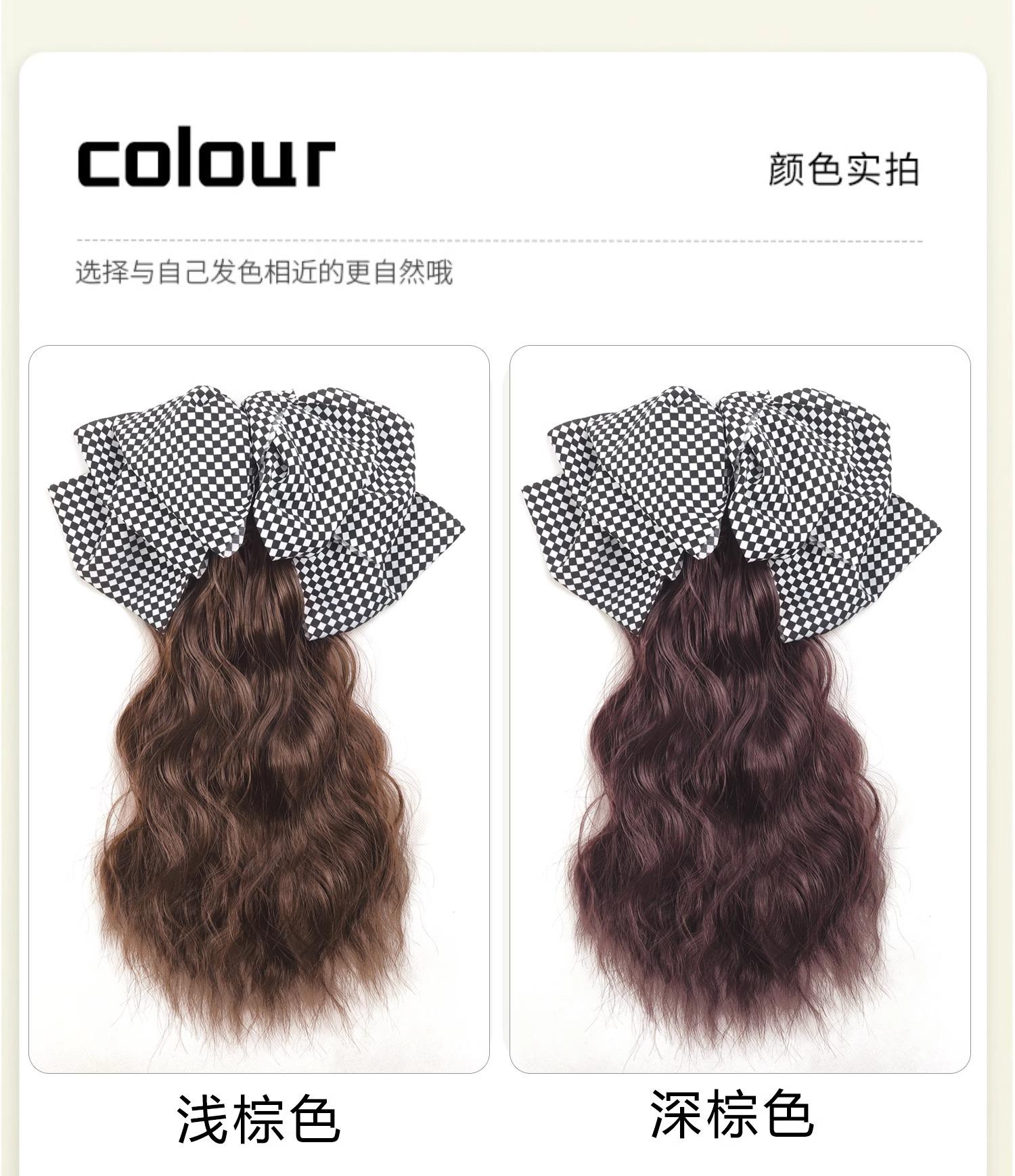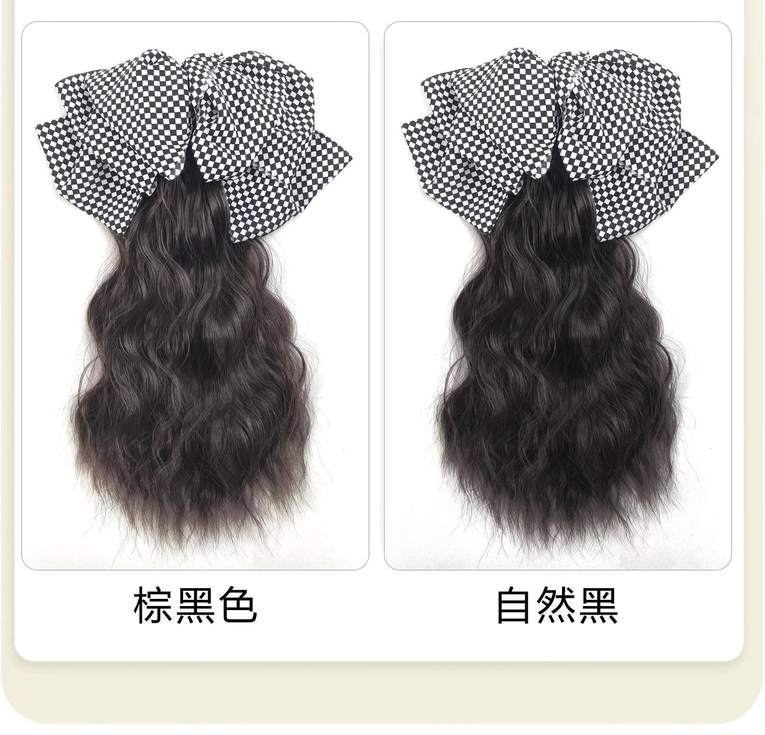 Peruca Rabo de Cavalo Cabelo Encaracolado Simulação Cabelo Grab Clip Rabo de Cavalo Natural Fofo Gravata Baixa Arco Checkerboard Onda de Água Rabo de Cavalo