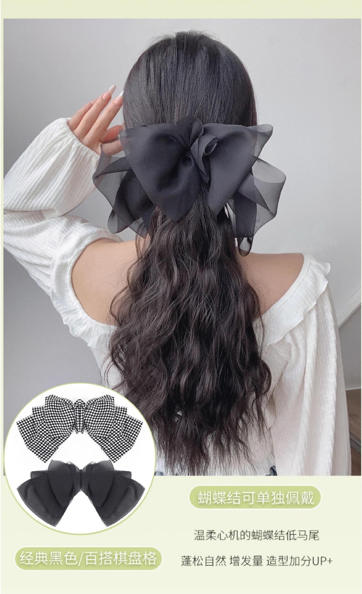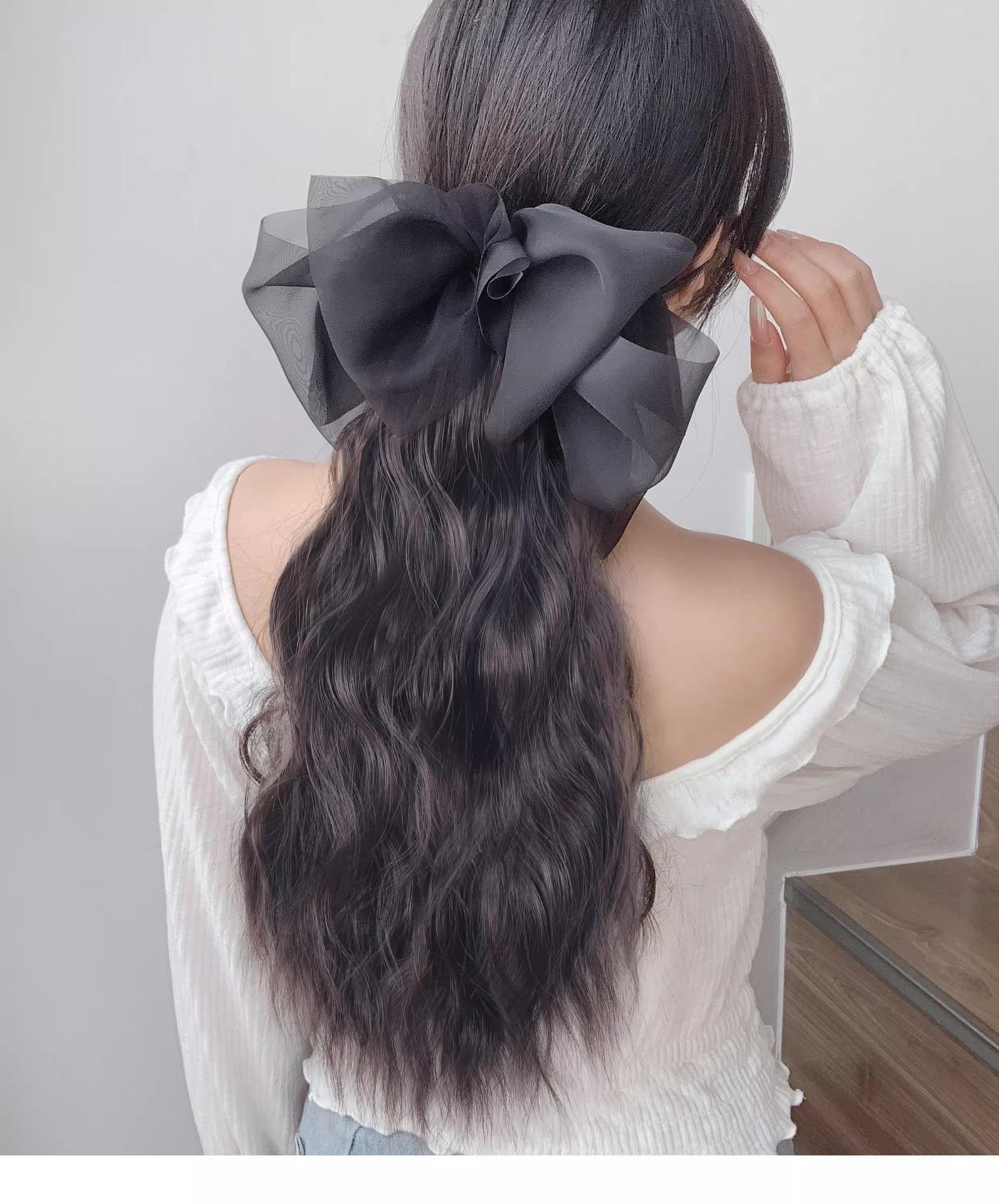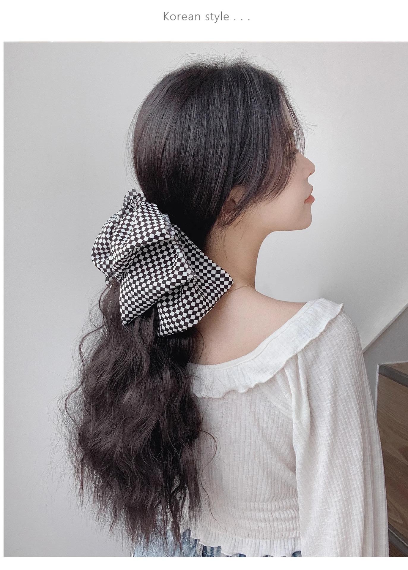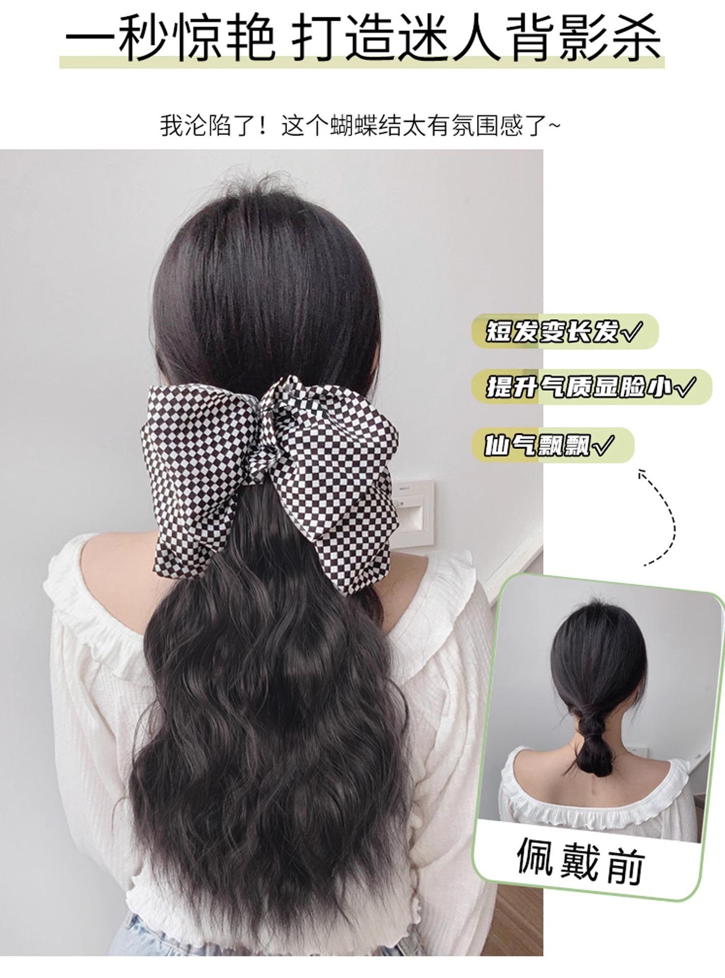 Peruca Rabo de Cavalo Cabelo Encaracolado Simulação Cabelo Grab Clip Rabo de Cavalo Natural Fofo Gravata Baixa Arco Checkerboard Onda de Água Rabo de Cavalo