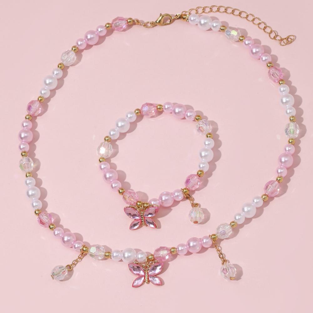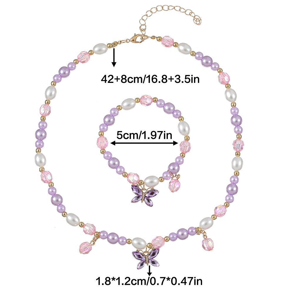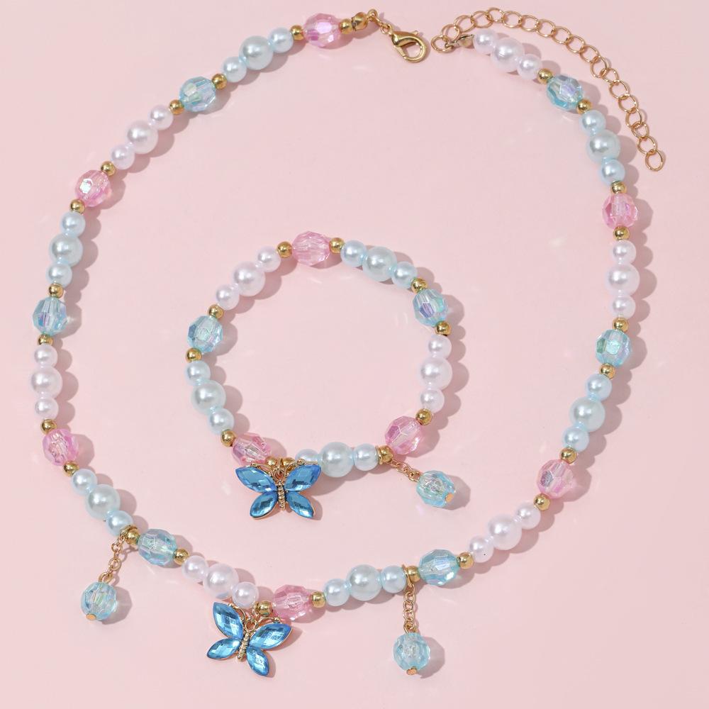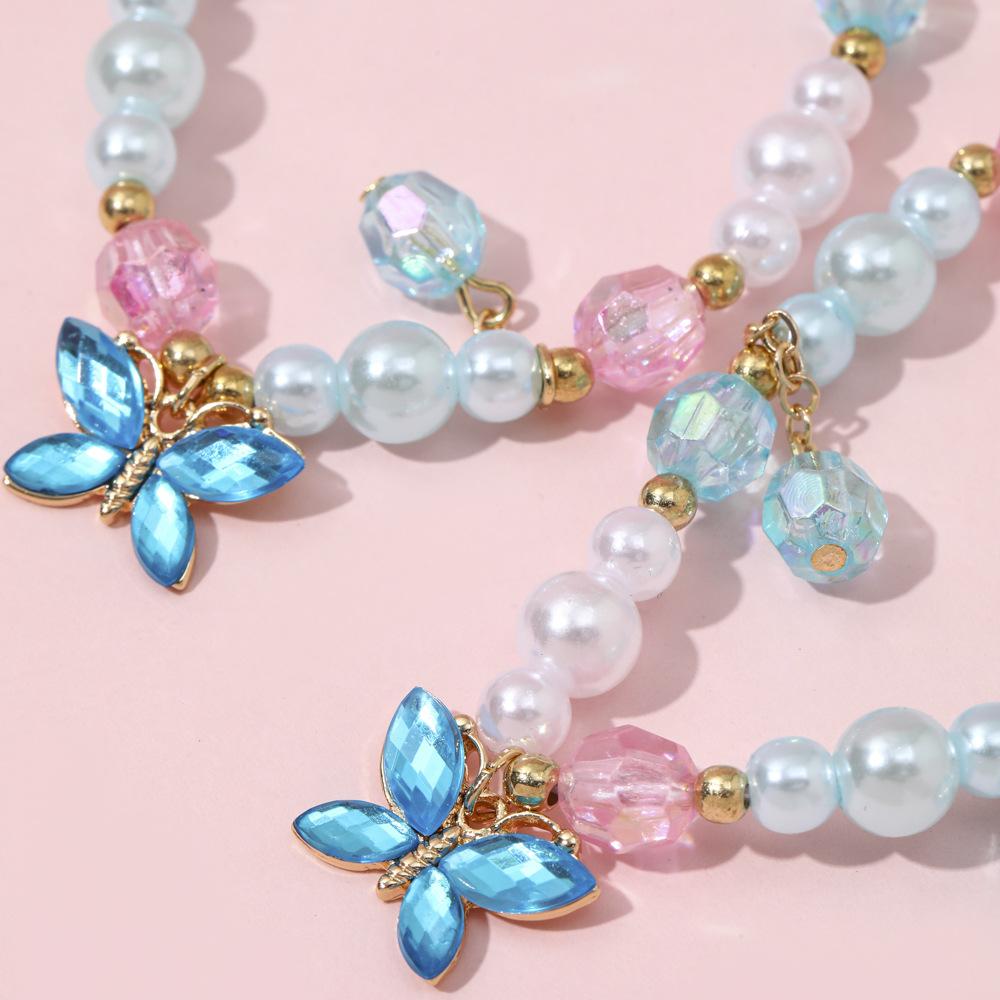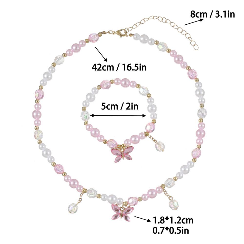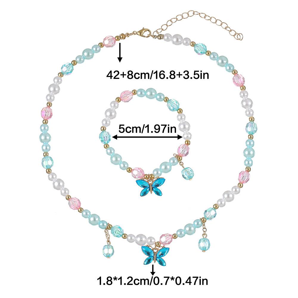 Cross-border New Children's Colar Pulseira Jóias terno Frisado Jóias Bonito Princesa Menina Borboleta Pingente Acessórios