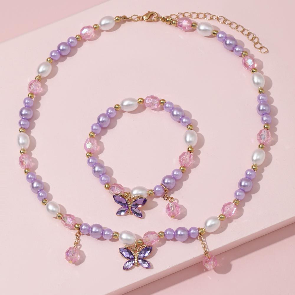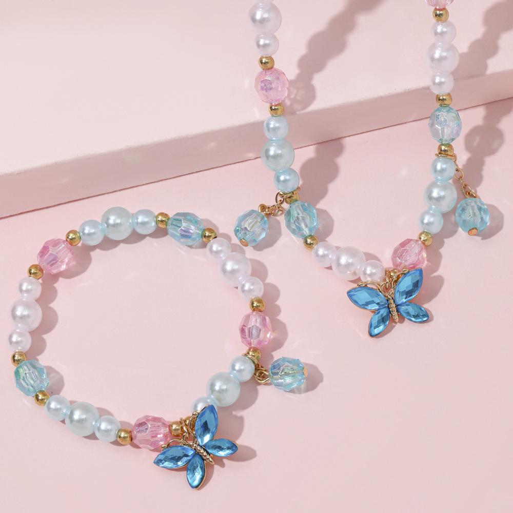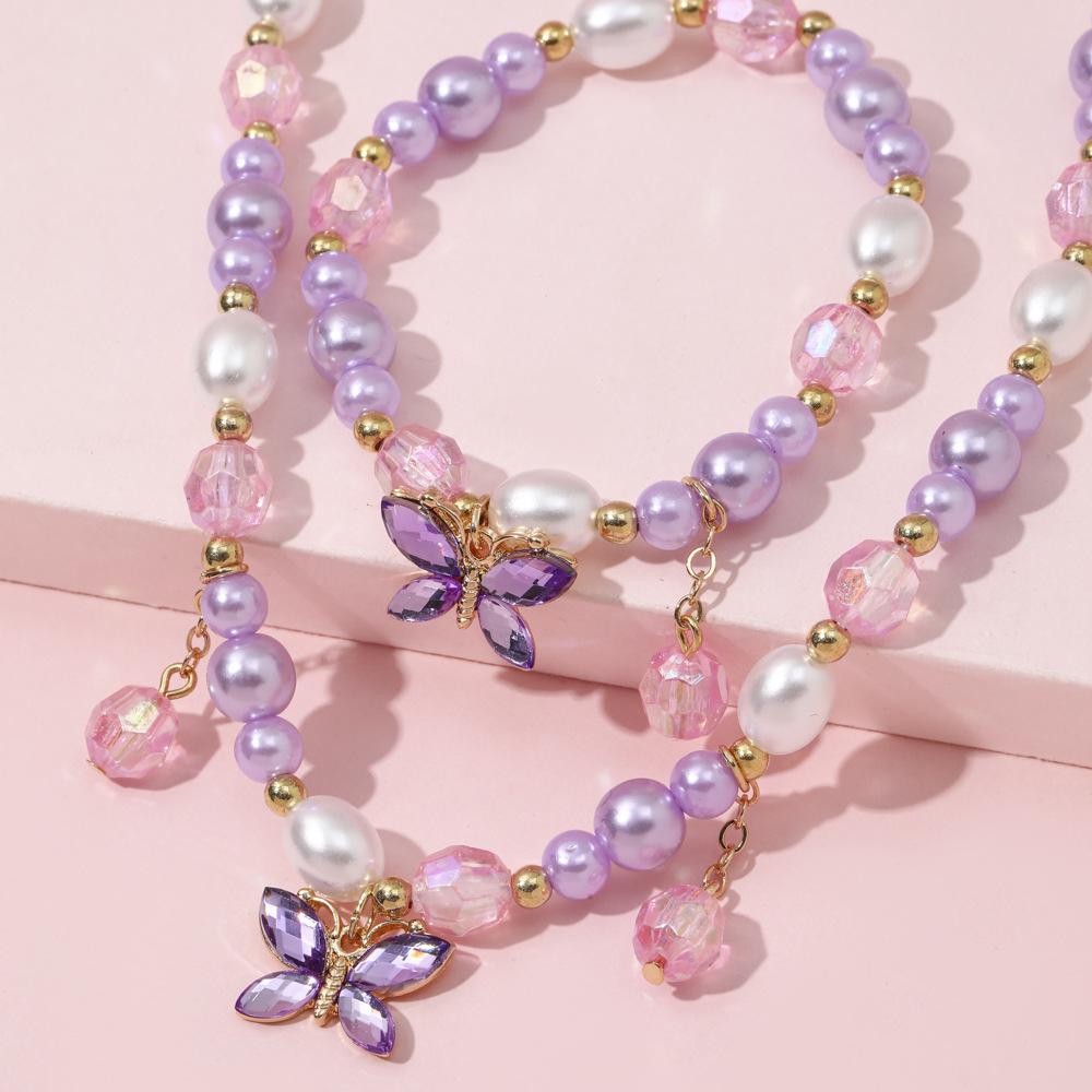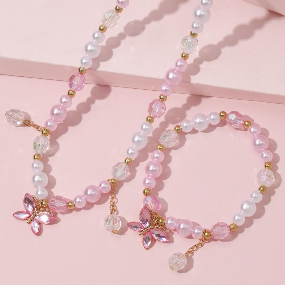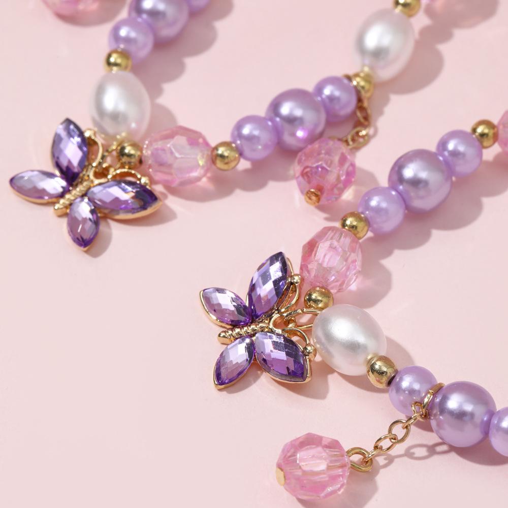 Cross-border New Children's Colar Pulseira Jóias terno Frisado Jóias Bonito Princesa Menina Borboleta Pingente Acessórios