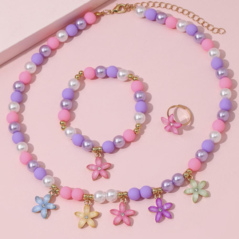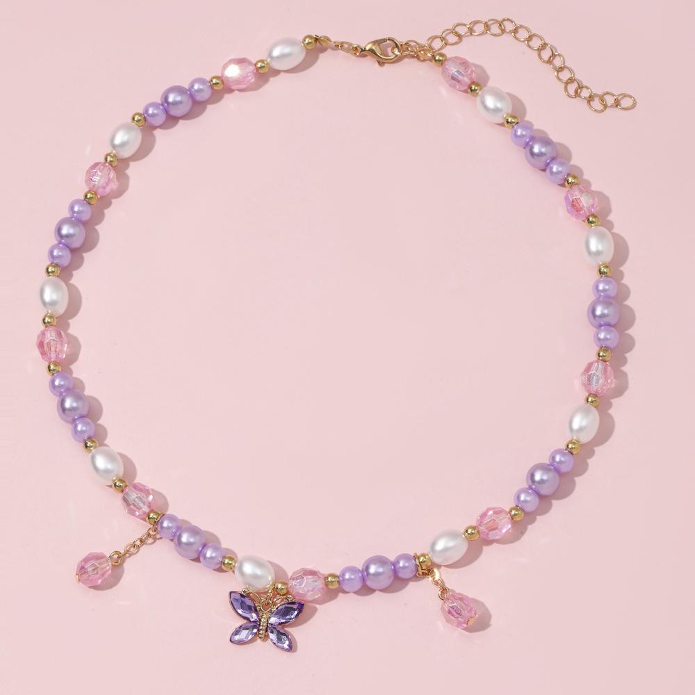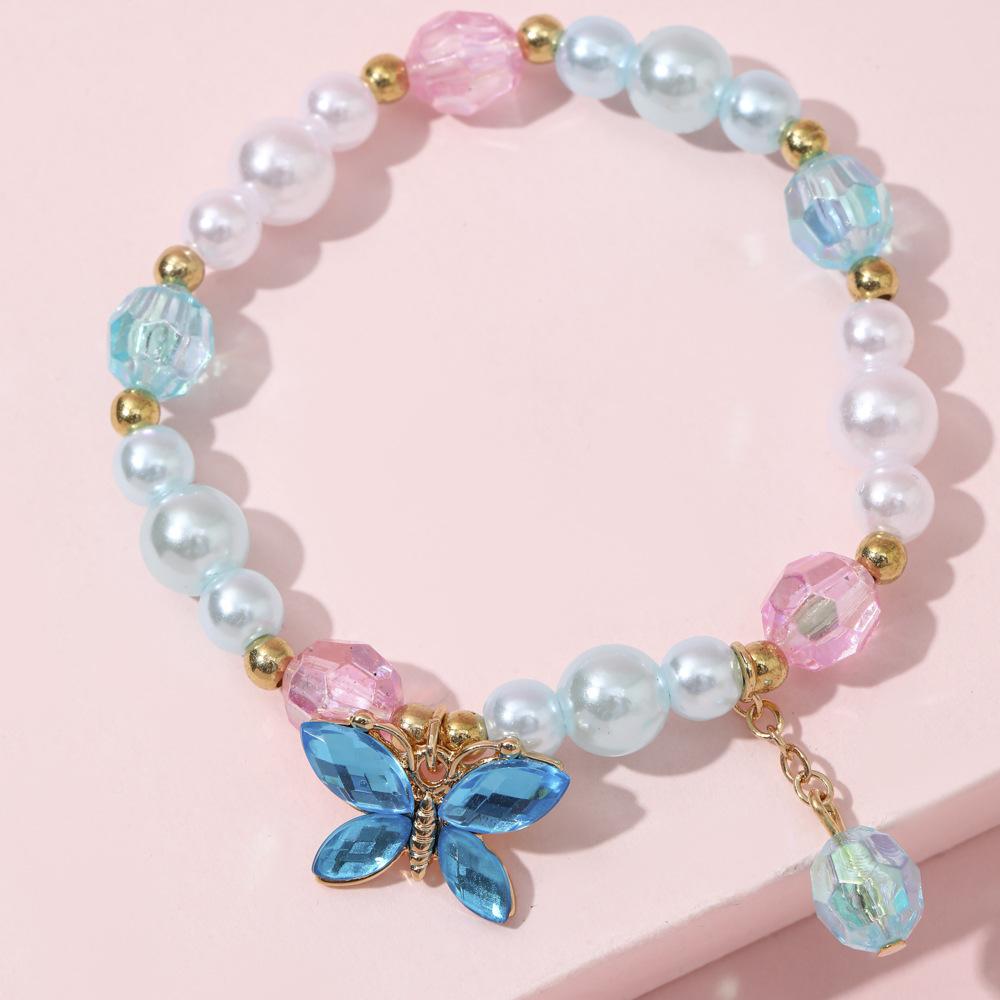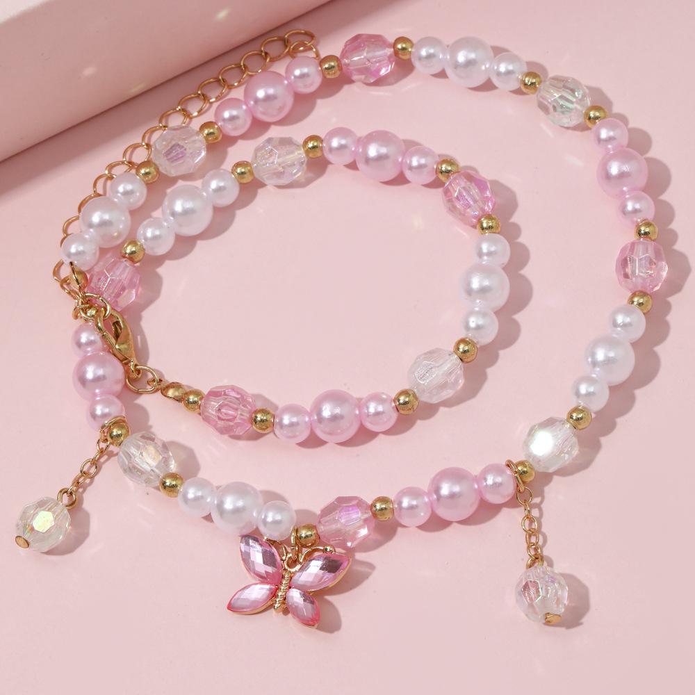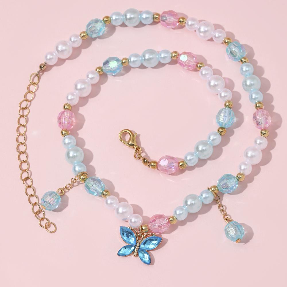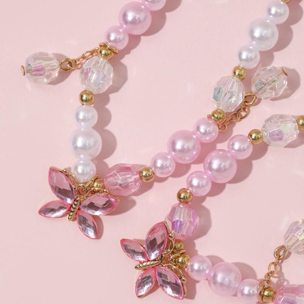 Cross-border New Children's Colar Pulseira Jóias terno Frisado Jóias Bonito Princesa Menina Borboleta Pingente Acessórios