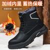 Calçados de proteção trabalhista masculinos com biqueira de aço, anti-esmagamento e resistente a perfurações, botas quentes de inverno de cano alto e espessadas