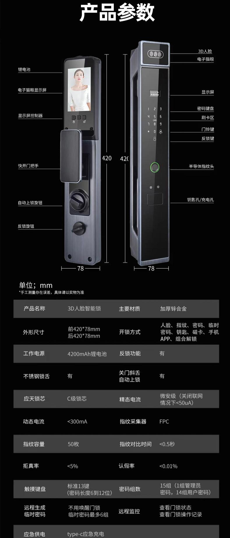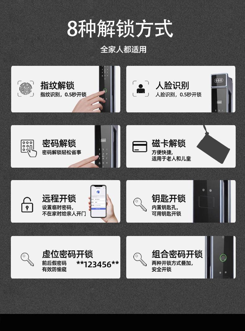 Bloqueio de impressão digital bloqueio inteligente automático 3D reconhecimento facial olho de gato visual transmissão ao vivo popular telefone móvel remoto fábrica atacado