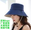 Chapéu de Pescador de Algodão Puro com Logotipo Bordado e Texto Estampado, Chapéu Amarelo Pequeno, Chapéu de Sol ao Ar Livre com Proteção Solar, Chapéu Bucket Dupla Face com Aba Larga