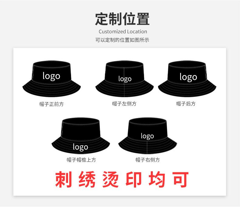 Logotipo Bordado Personalizado em Chapéu Bucket de Algodão Puro, Chapéu Bucket Liso para Pais e Filhos, Chapéu de Proteção Solar com Aba Larga, Casual e Versátil