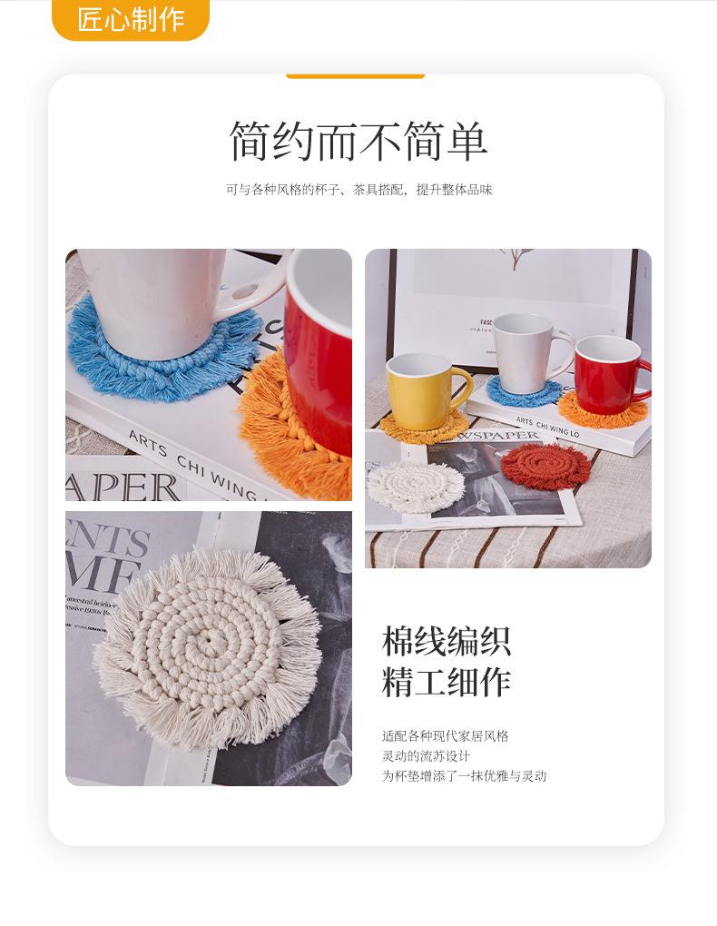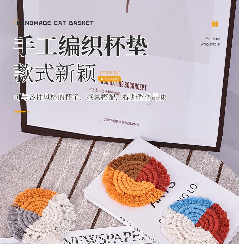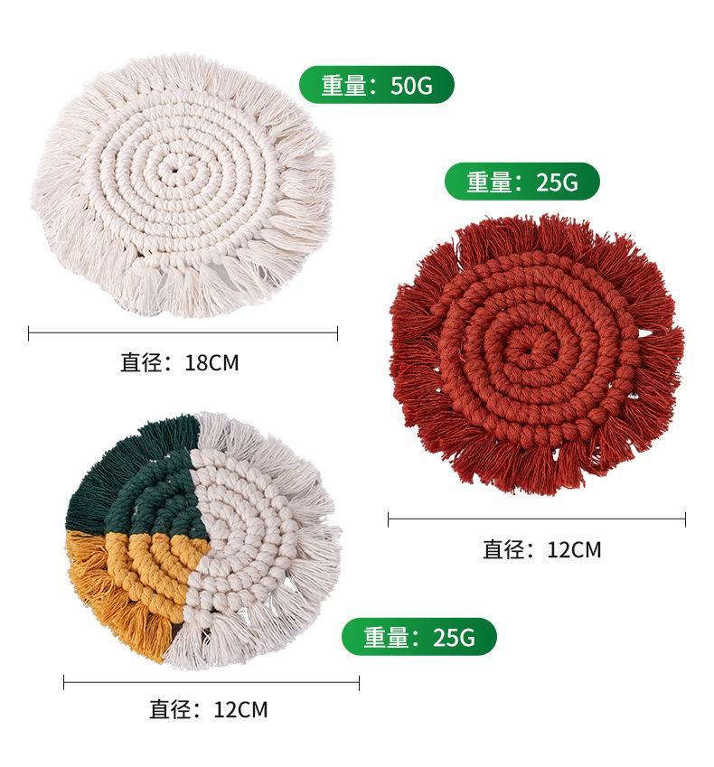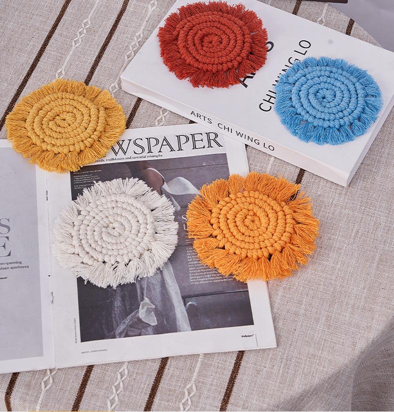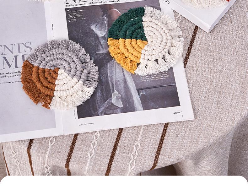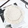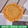 Coaster Coaster Redondo Tecido à Mão Multi-cor Tapete de Isolamento Térmico Tapete de Mesa de Cortiça Coaster de Madeira Tassel Coaster