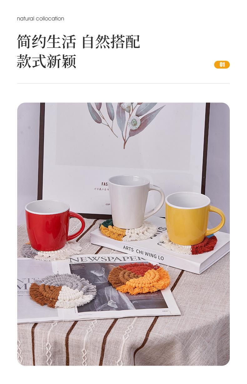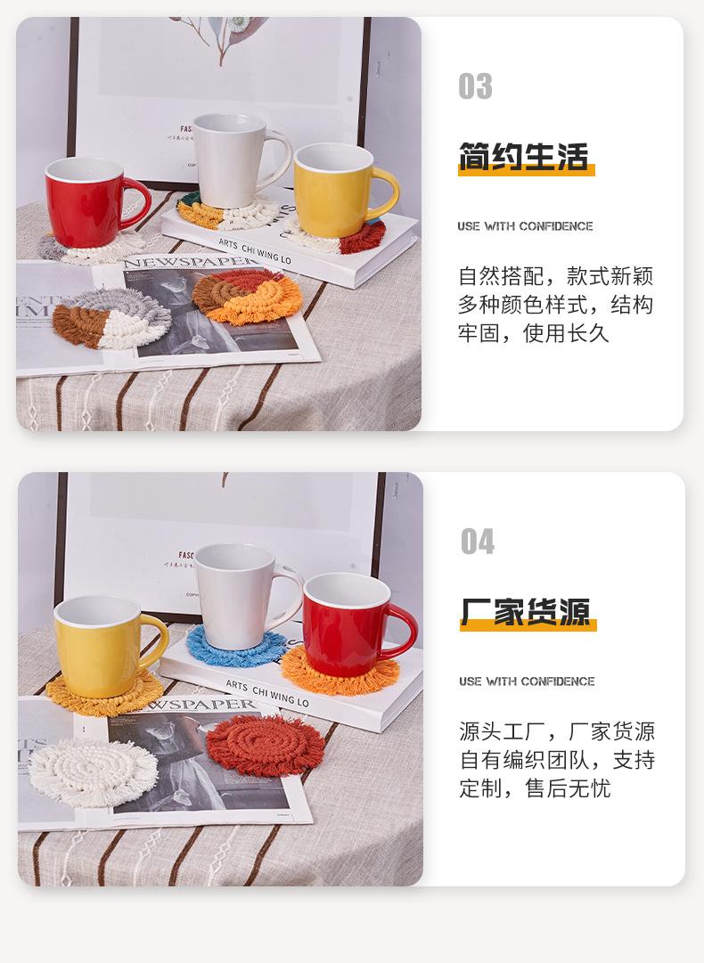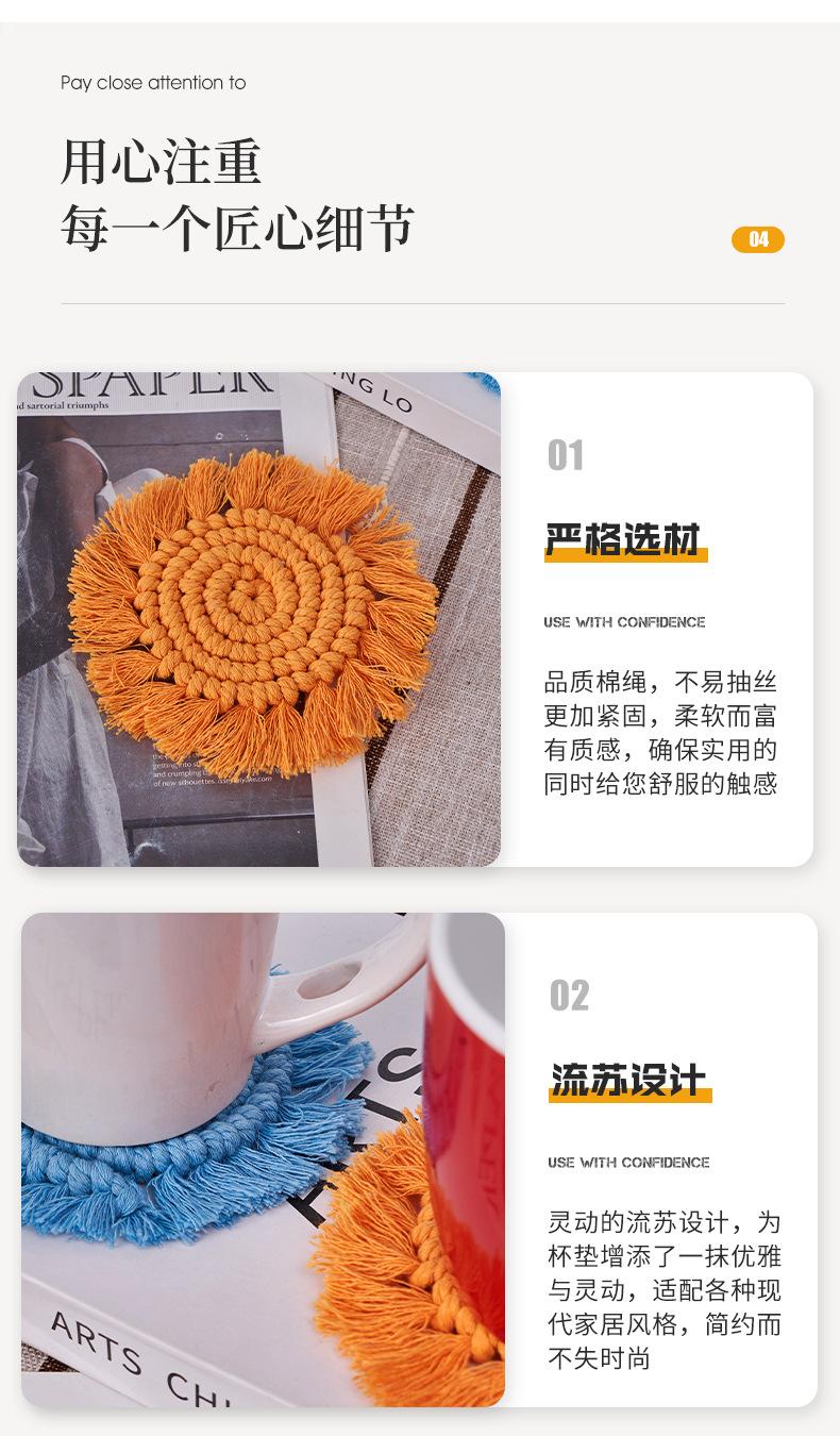 Coaster Coaster Redondo Tecido à Mão Multi-cor Tapete de Isolamento Térmico Tapete de Mesa de Cortiça Coaster de Madeira Tassel Coaster