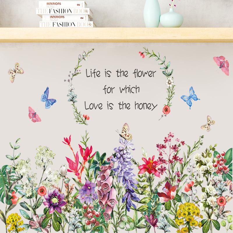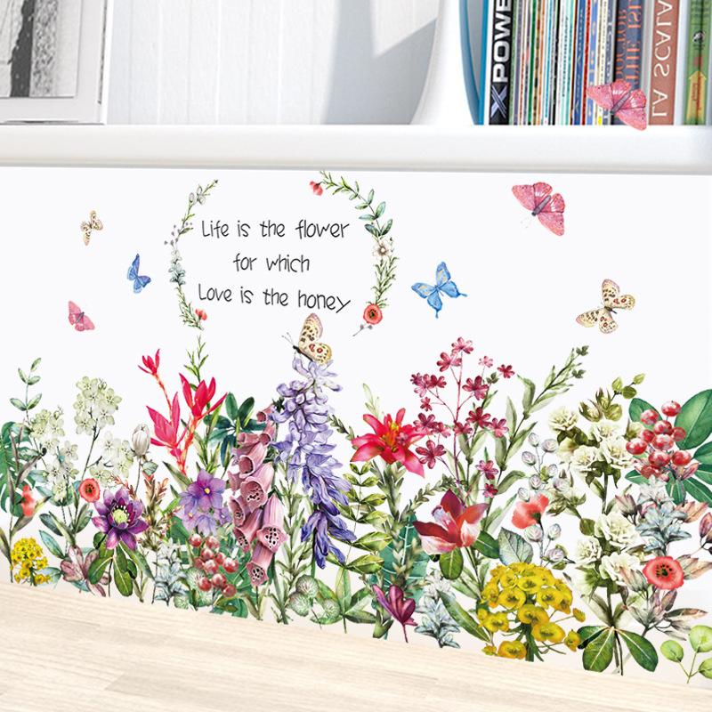 Fábrica de adesivos de parede atacado Nova linha de rodapé de flores românticas quarto sala de estar Rodapé de flores removível CT4013