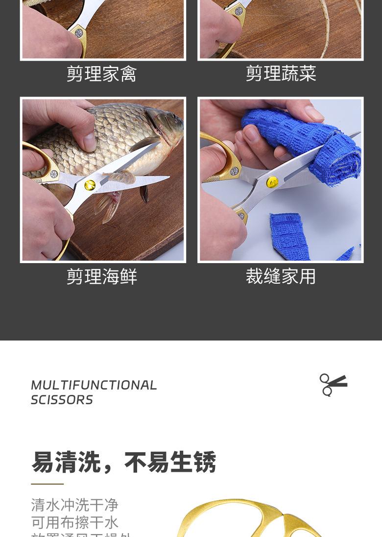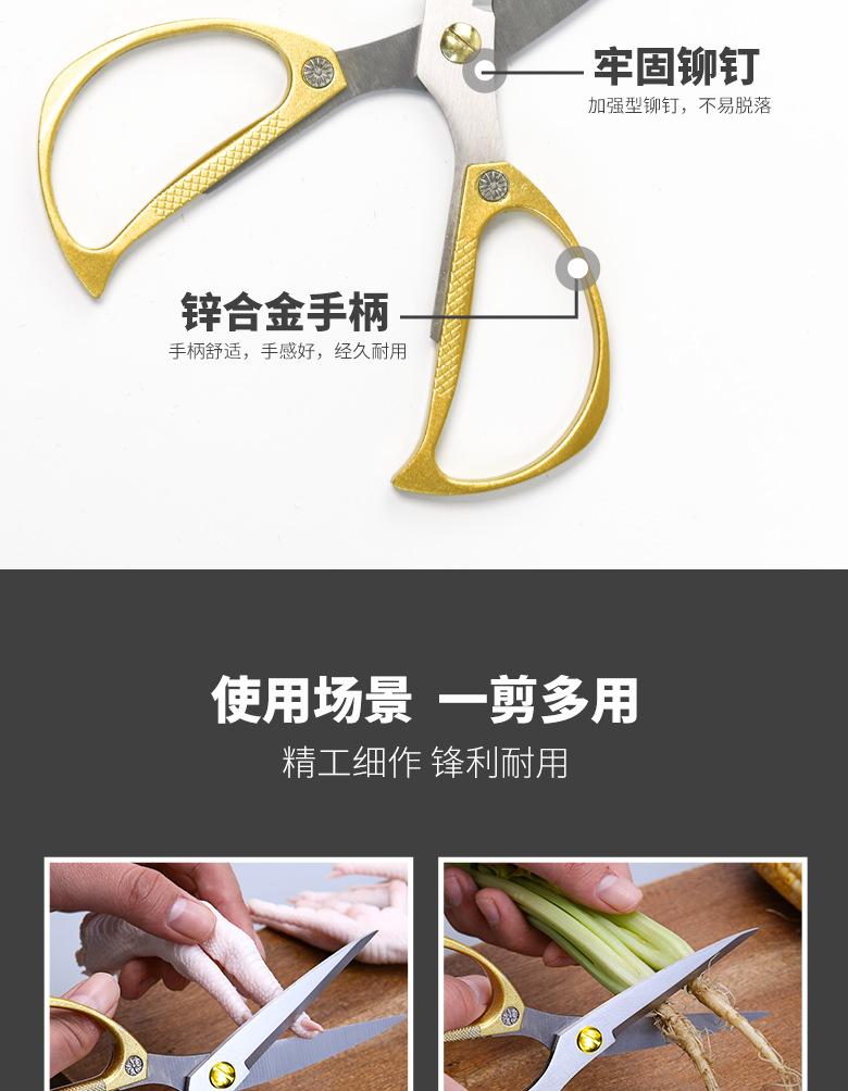 Tesoura de Cozinha de Liga de Aço Inoxidável para Cortar Tecido, Papel, Alfaiataria e Ossos de Frango, Tesoura Doméstica Afiada Feita em Yangjiang