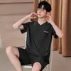 Pijama Modal Masculino de Verão Shorts de Manga Curta Gola Redonda Casual Home Wear Simples Fino Terno Externo para Homens