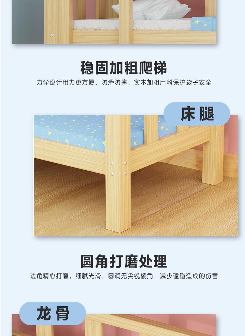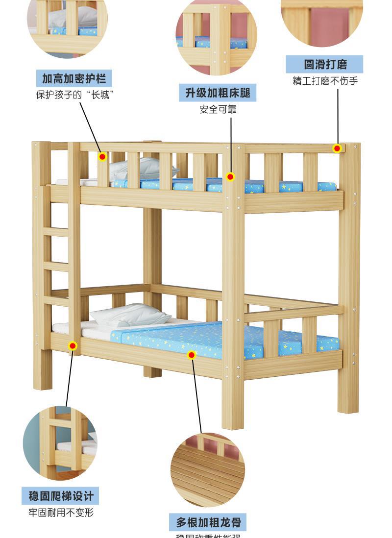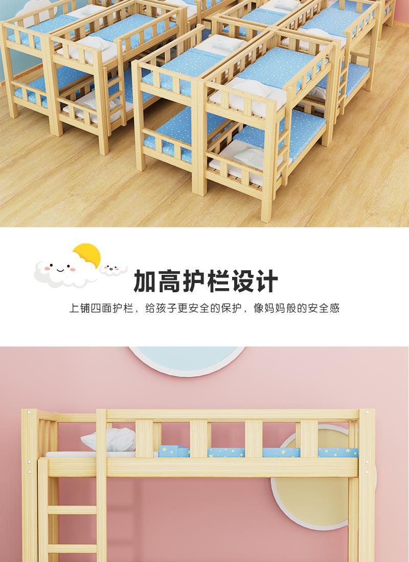 Cama infantil dentro e fora do jardim de infância dentro e fora da cama em classe de confiança Alunos do ensino fundamental Cama de almoço de madeira maciça de dupla camada alta